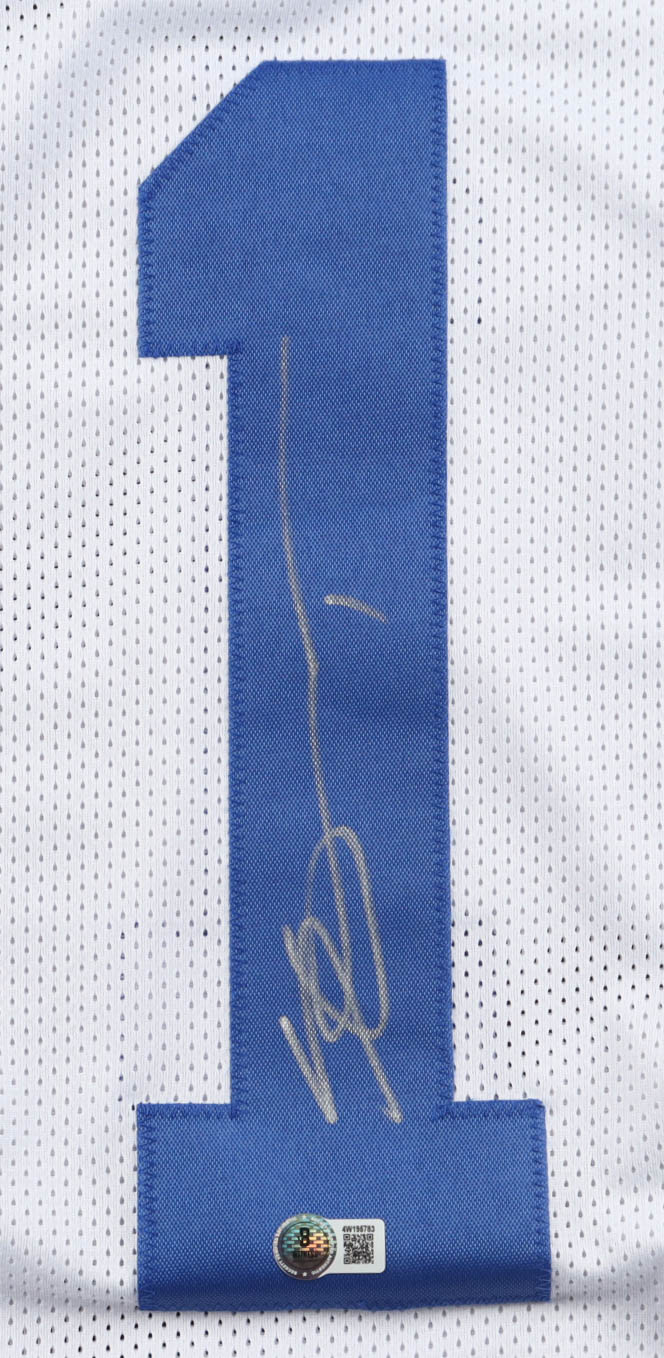 Custom jersey with everything sewn on, size XL. Hand-signed by Ahmad "Sauce" Gardner (Indianapolis Colts).
