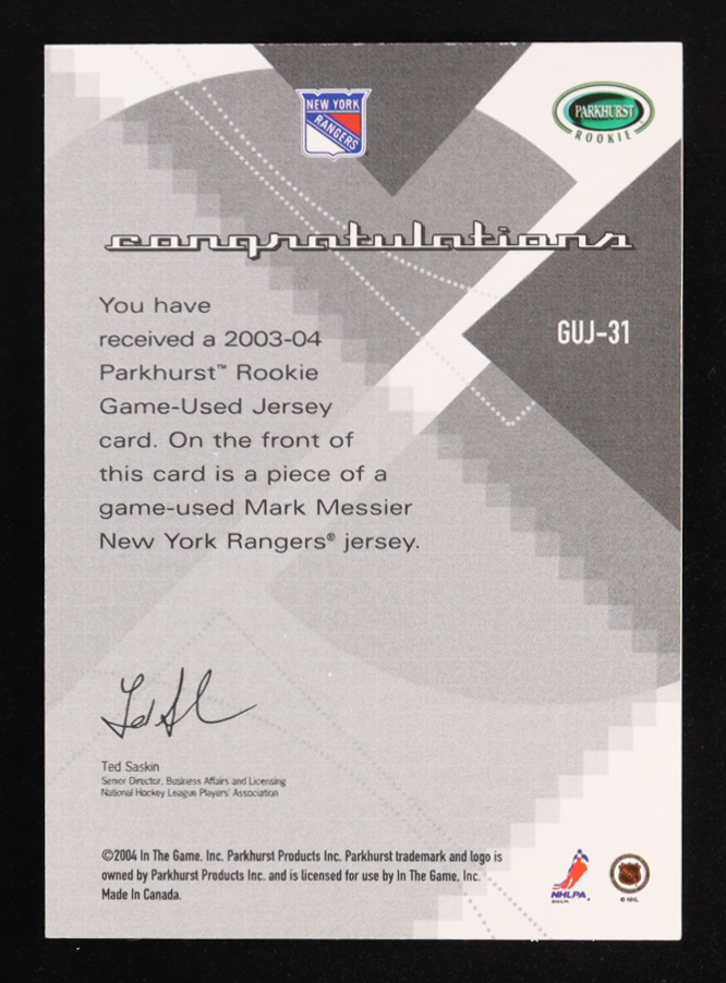 Mark Messier 2003-04 Parkhurst Rookie Jerseys #GJ31