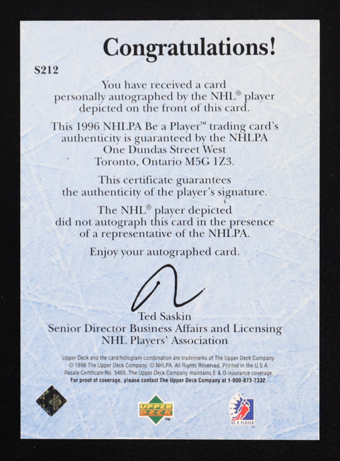 Adam Graves 1995-96 Be A Player Autographs #S212