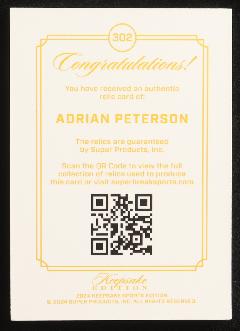 Adrian Peterson 2024 Keepsake Edition Gem Relic #302 #59/99