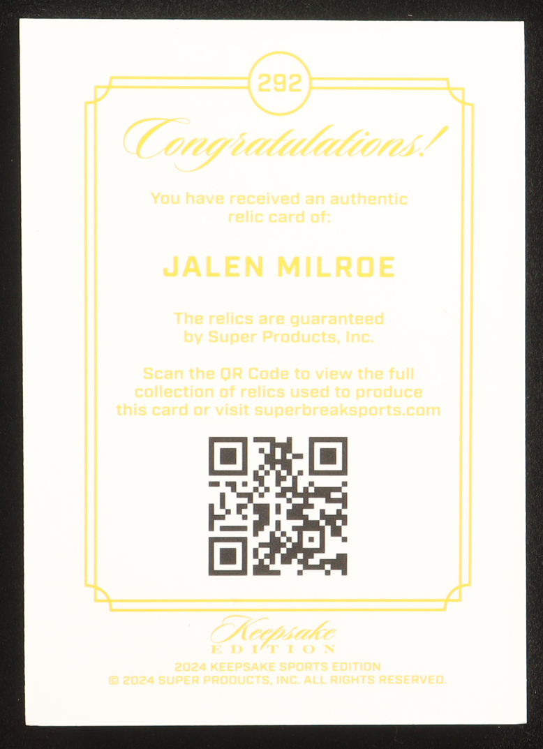 Jalen Milroe 2024 Keepsake Edition Gem Relic #292 #46/99