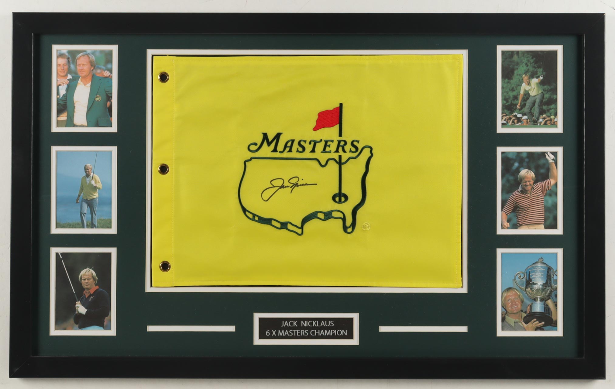 Jack Nicklaus Signed Custom Framed Masters Tournament Golf Pin Flag Display (JSA)