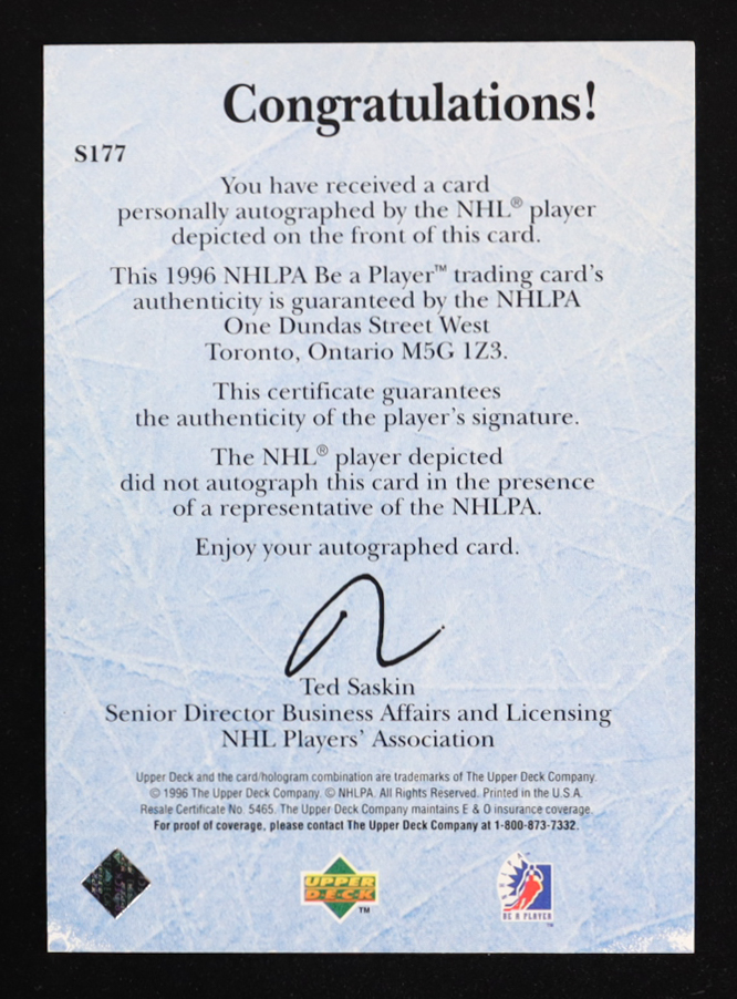 Niklas Sundstrom 1995-96 Be A Player Autographs #S177 RC