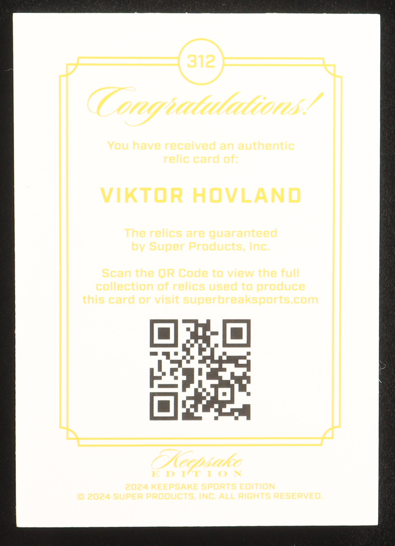 Viktor Hovland 2024 Keepsake Edition Gem Relic #312 #05/99