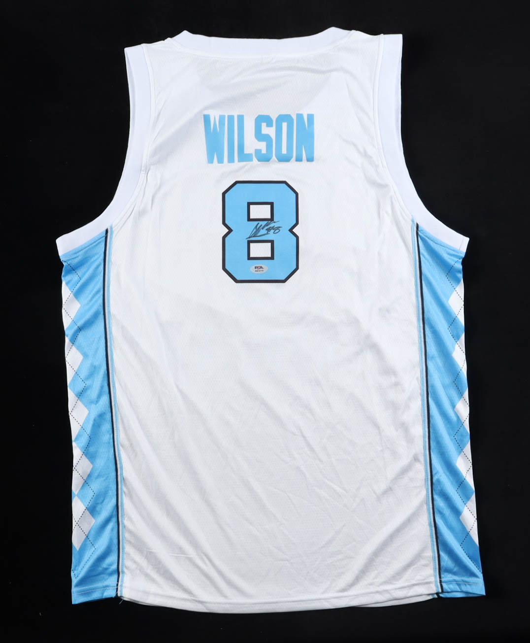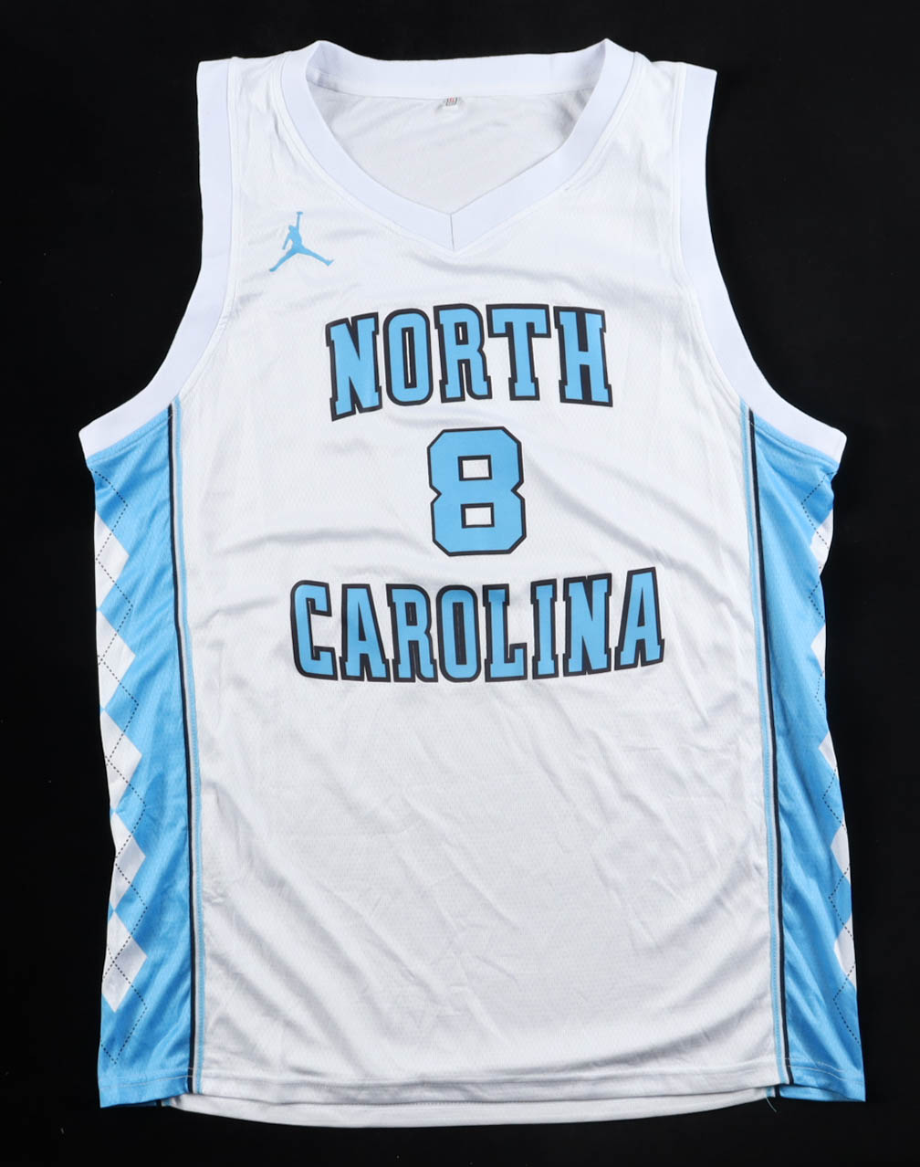 Jordan jersey with everything pressed on, size XL. Hand-signed by Caleb Wilson (North Carolina Tar Heels).