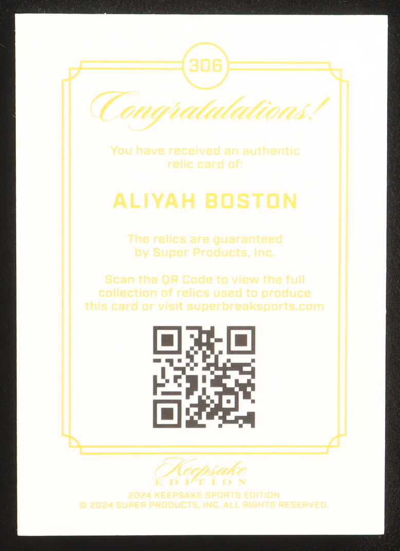 Aliyah Boston 2024 Keepsake Edition Gem Relic #306 #12/99