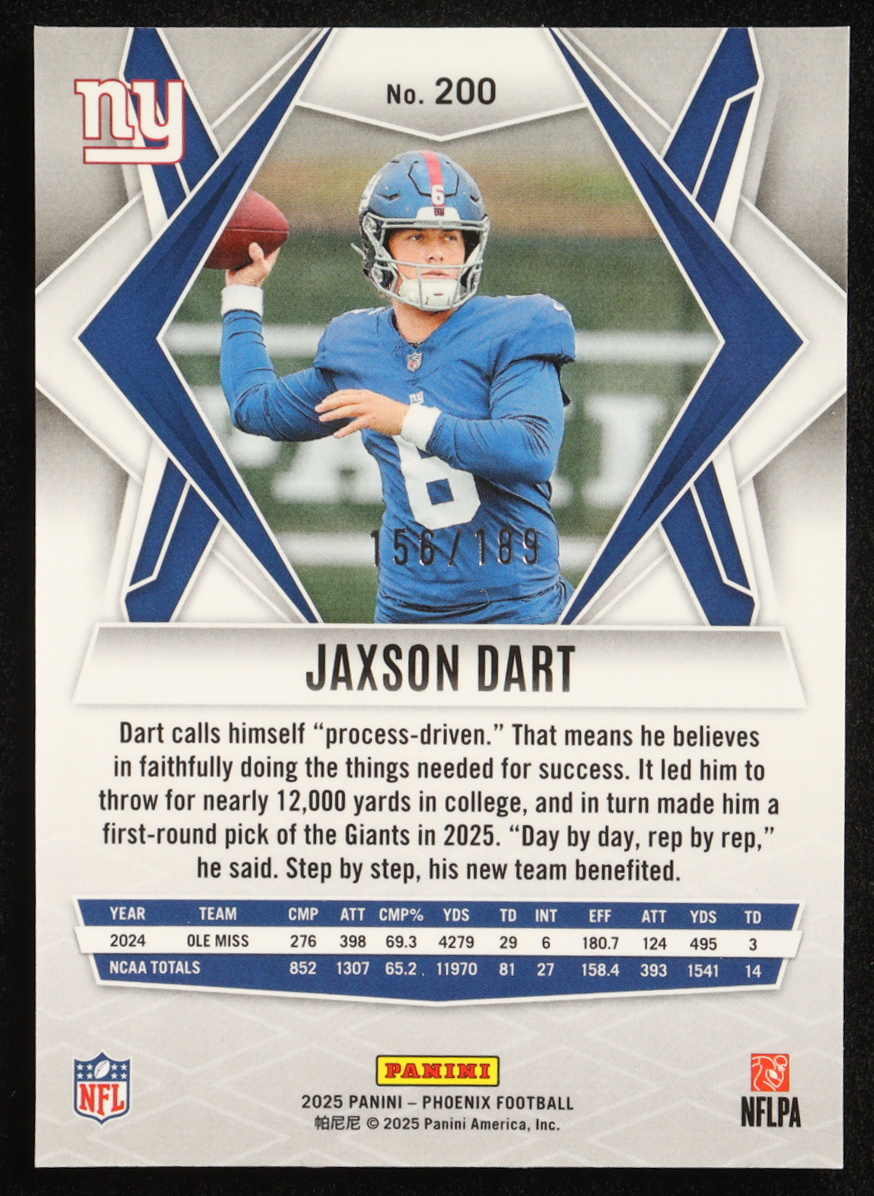Jaxson Dart 2025 Panini Phoenix Orange Pandora #200 #159/189 RC