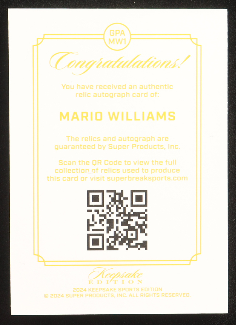 Mario Williams 2024 Keepsake Edition Gem Patch Autograph #GPAMW1 #43/99