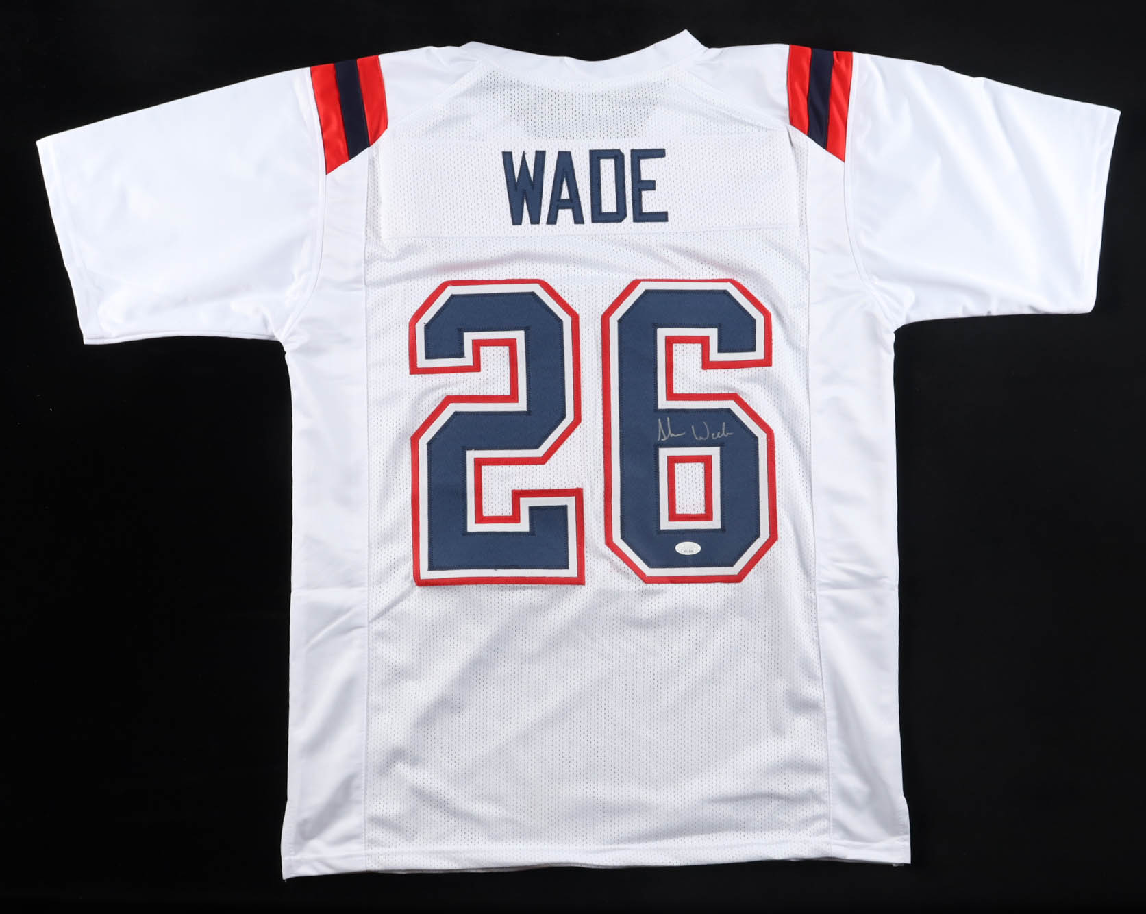 Custom jersey with everything sewn on, size XL. Hand-signed by Shaun Wade.