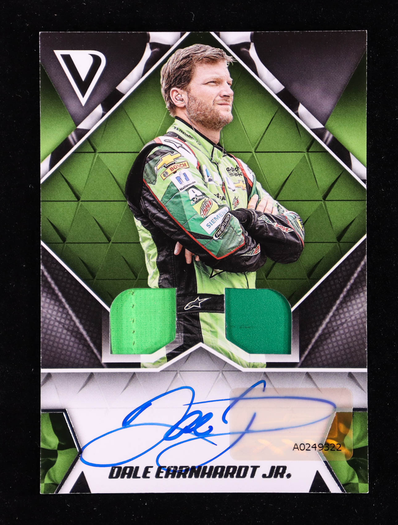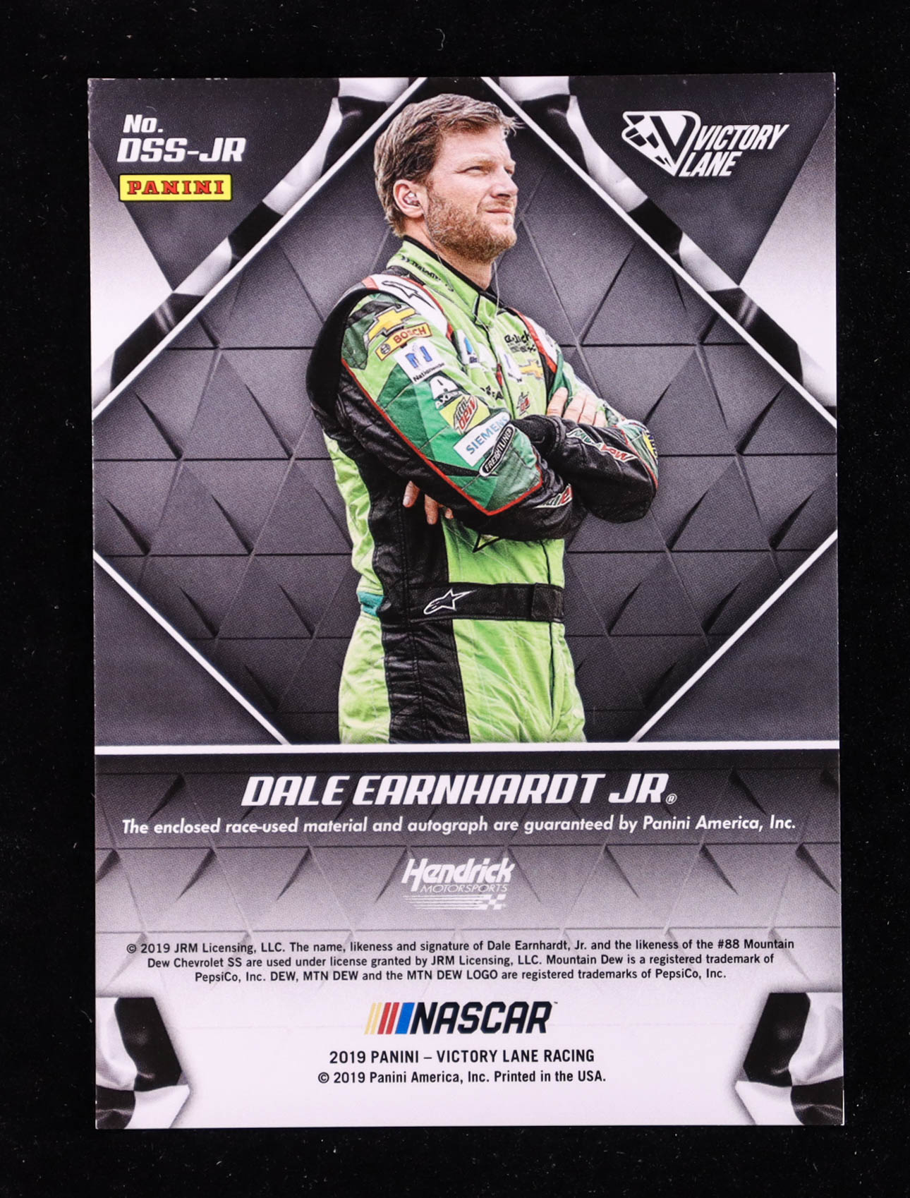 Dale Earnhardt Jr. 2019 Panini Victory Lane Dual Swatch Signatures #5 EXCH