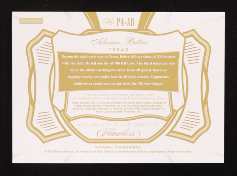 Adrian Beltre 2019 Panini Flawless Patch Autographs Emerald #27 #2/3