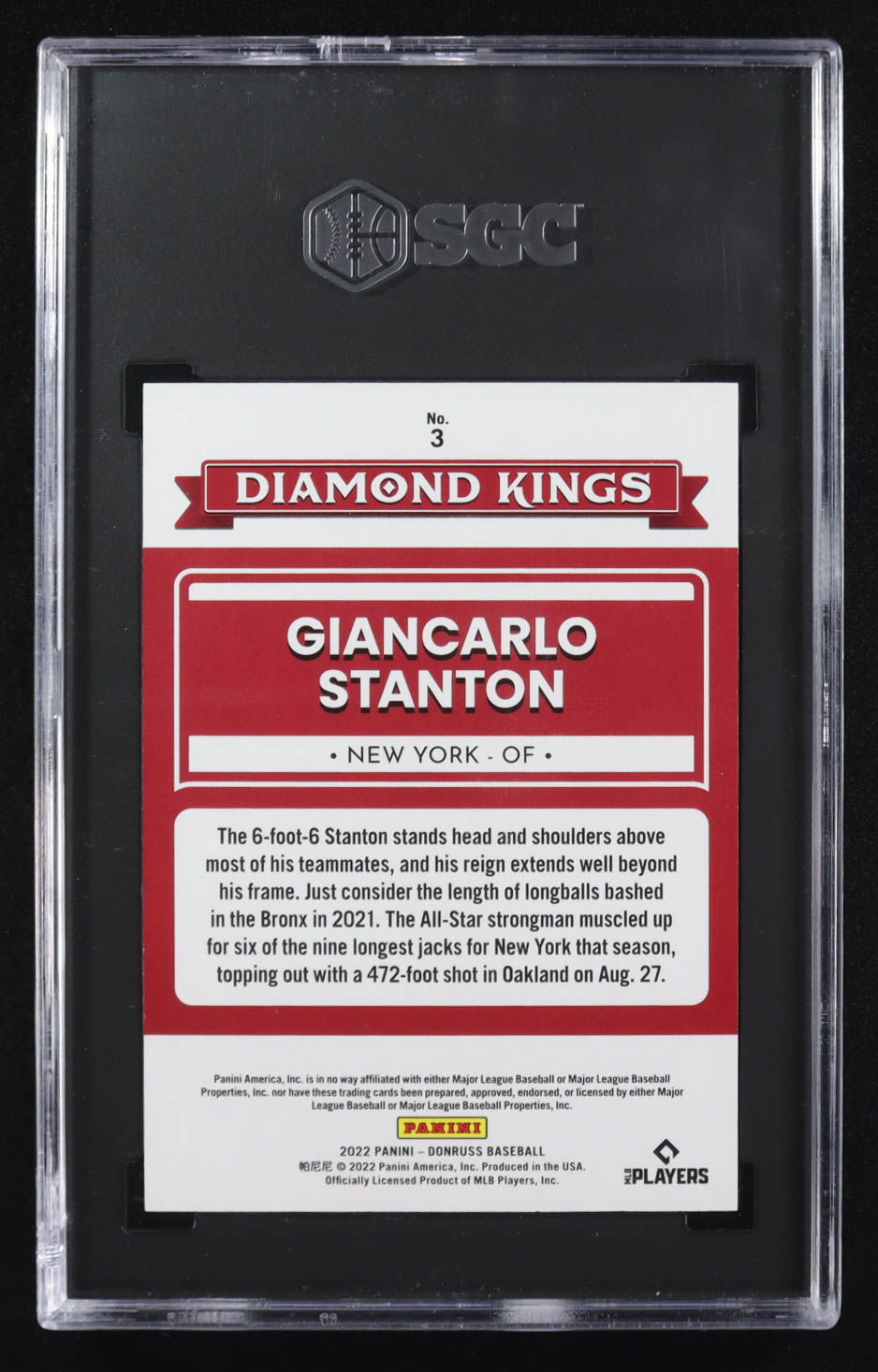 Giancarlo Stanton 2022 Donruss Diamond Kings Artist's Proof #3 #5/10 (SGC 10)