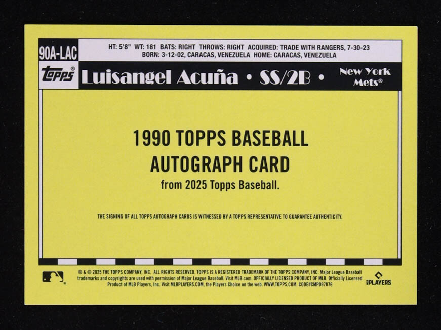 Luisangel Acuna 2025 Topps '90 Topps Autographs #90ALAC RC
