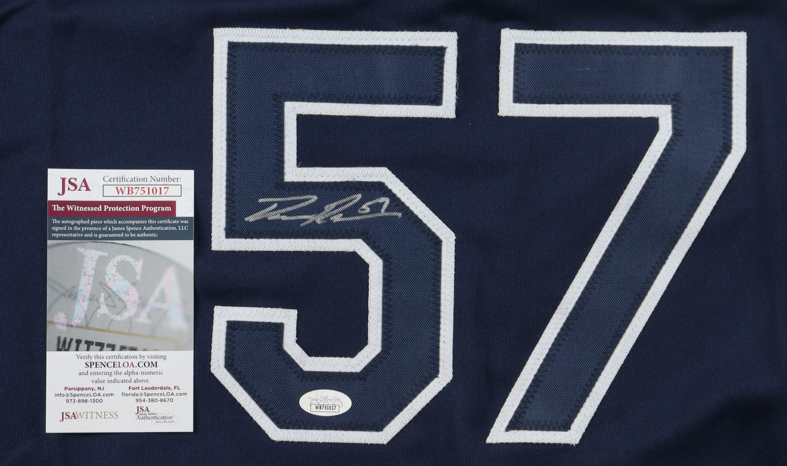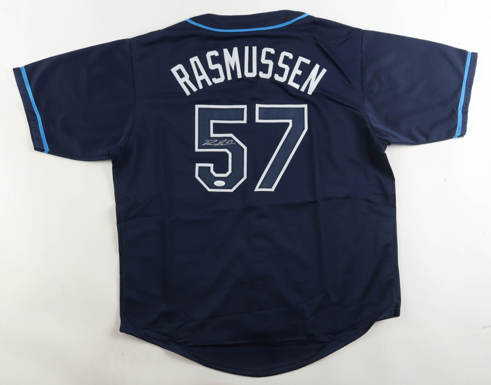 Custom jersey with everything sewn on, size XL. Hand-signed by Drew Rasmussen.