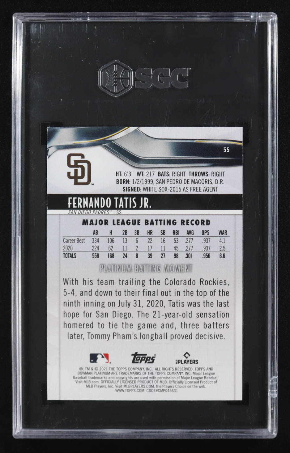 Fernando Tatis Jr. 2021 Bowman Platinum Aqua Ice Foilboard #55 #026/250 (SGC 10)