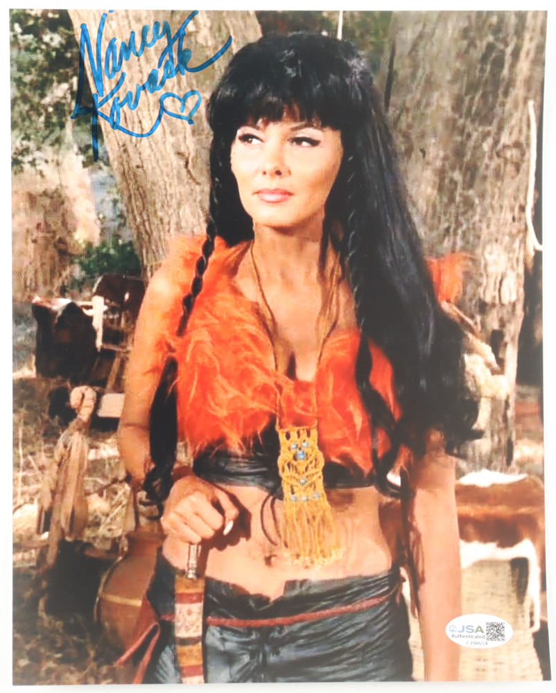 Photo measures 8" x 10" in size and has been hand-signed by Nancy Kovack.
