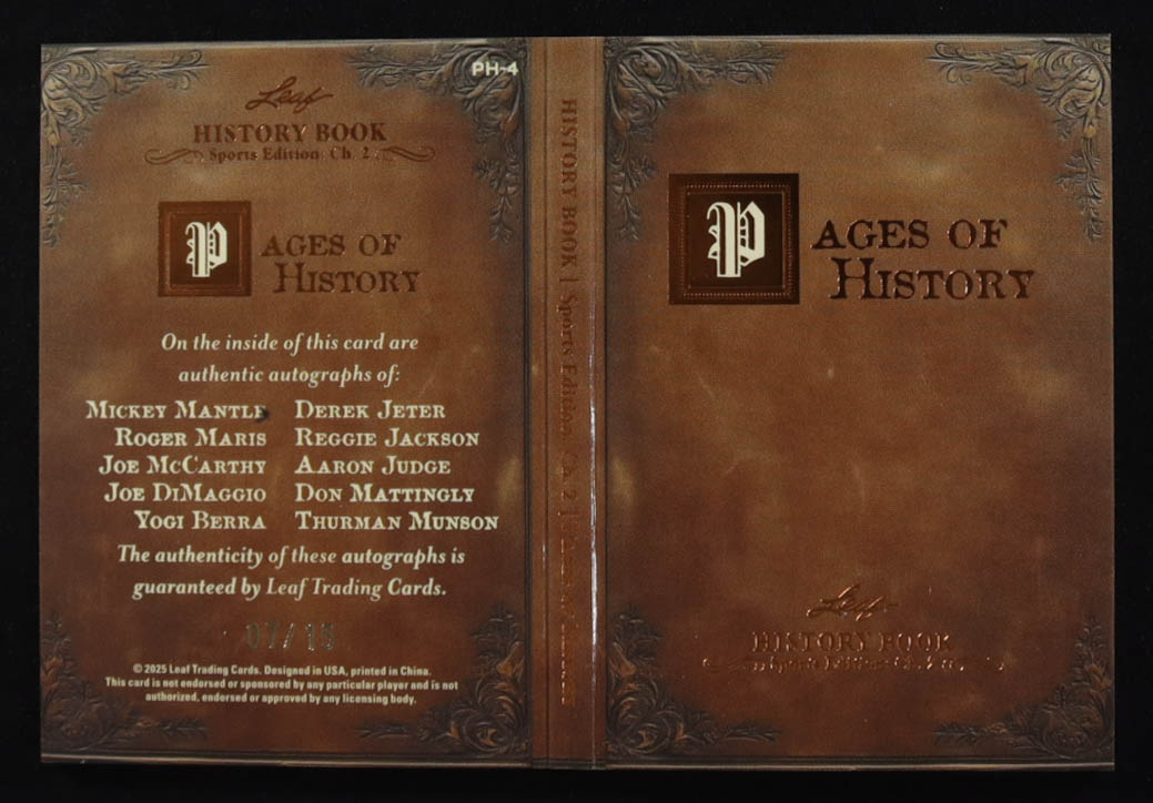 2025 Leaf History Book Sports Edition Chapter 2 The Pages of History Bronze Foil #PH4 #07/15 Mickey Mantle / Roger Maris / Joe McCarthy / Joe DiMaggio / Yogi Berra / Derek Jeter / Reggie Jackson / Aaron Judge / Don Mattingly / Thurman Munson