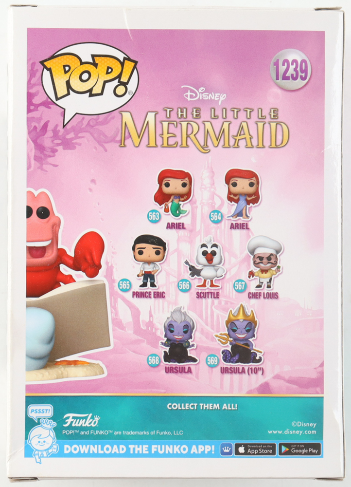 Vinyl figure measures approximately 4" tall and has been hand-signed and inscribed on the packaging by Daveed Diggs (Voice of Sebastian). Please note, there are minor creases on the corners of the packaging.
