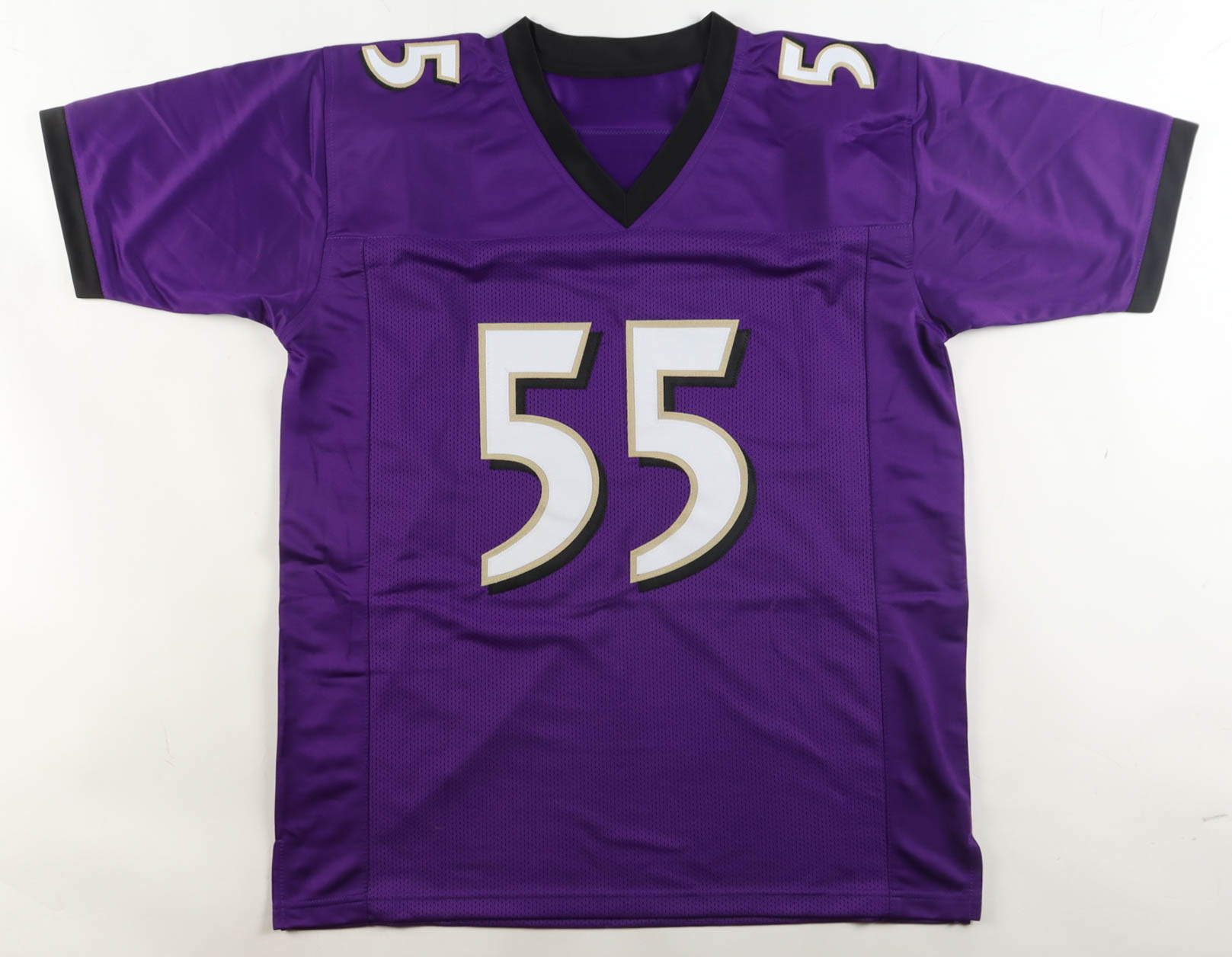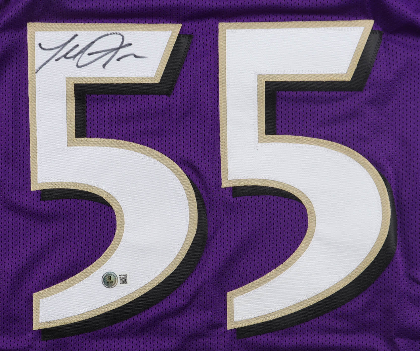 Custom jersey with everything sewn on, size XL. Hand-signed by Terrell Suggs.