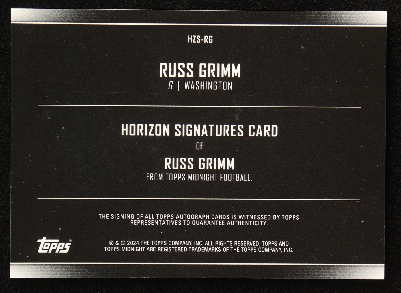 Russ Grimm 2024 Topps Midnight Horizon Signatures Winter Solstice #HZSRG #31/35