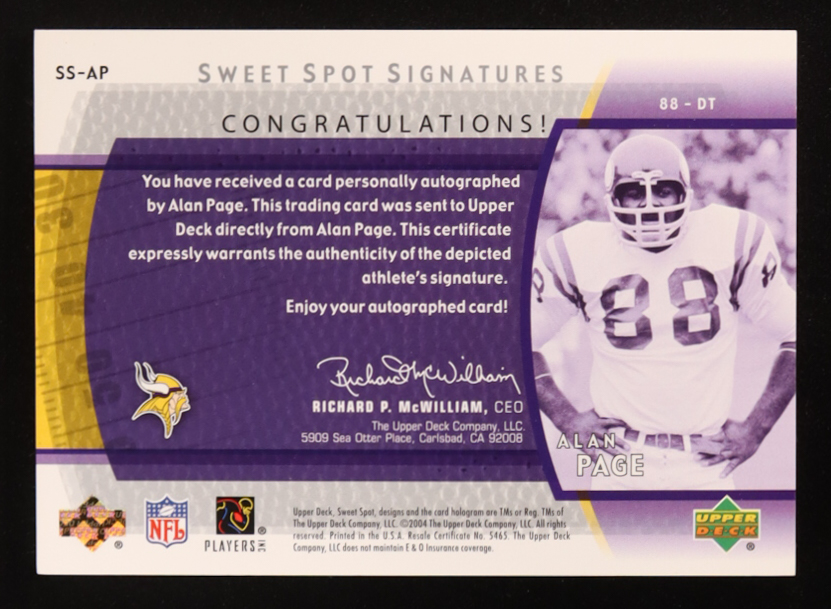 Alan Page 2004 Sweet Spot Signatures #SSAP