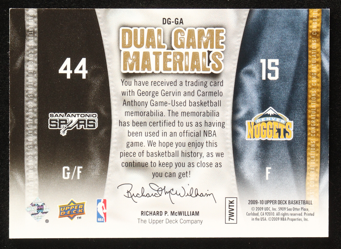 Carmelo Anthony / George Gervin 2009-10 Upper Deck Game Materials Dual Gold #DGGA #069/150