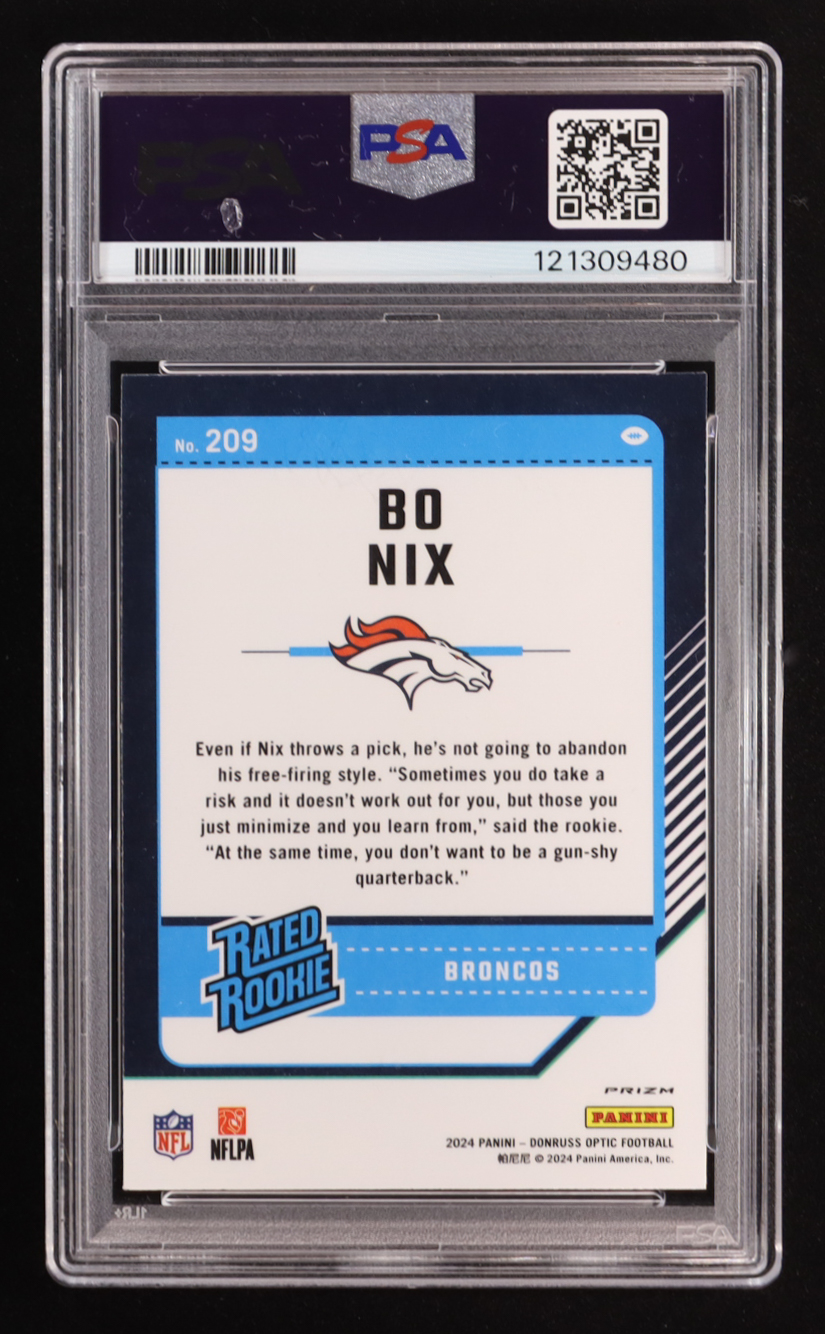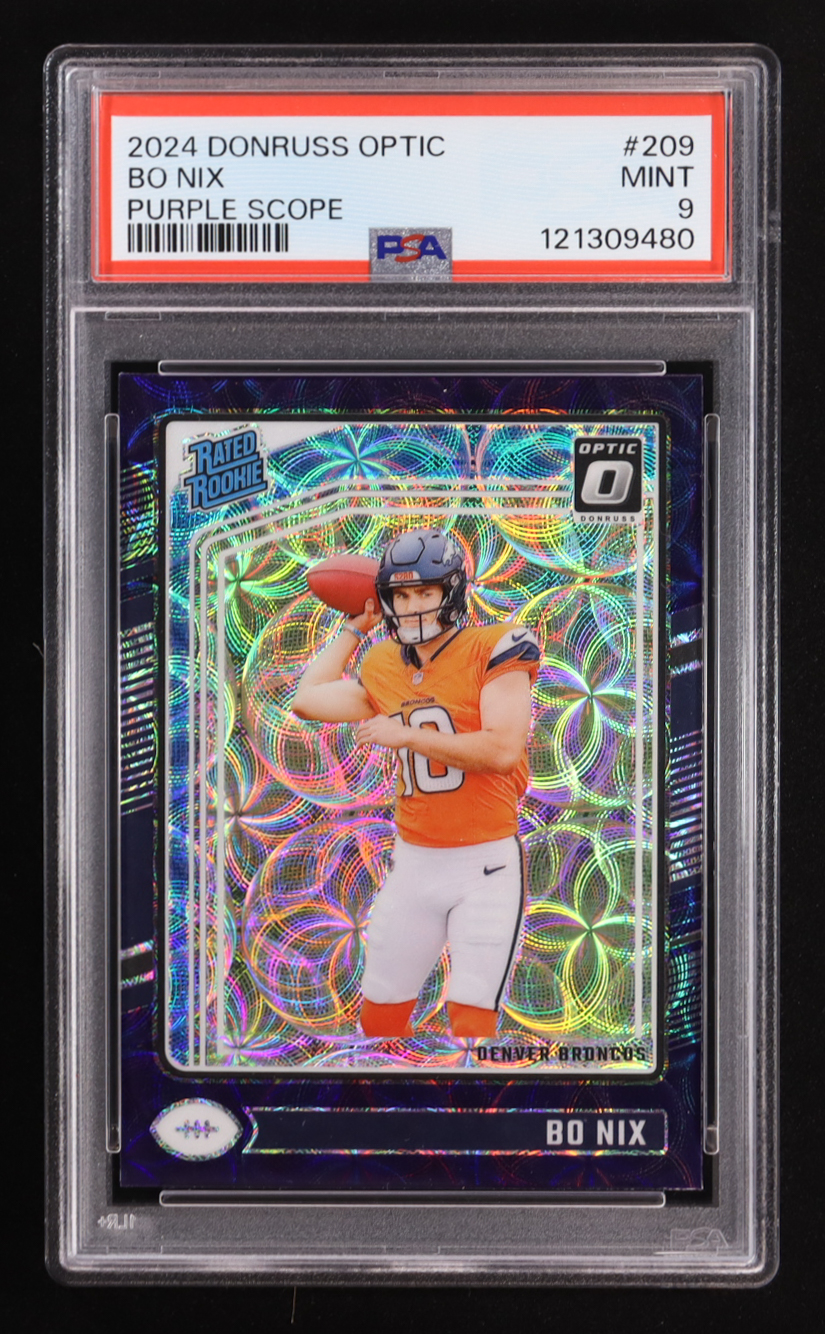 Bo Nix 2024 Donruss Optic Purple Scope #209 RR RC (PSA 9)