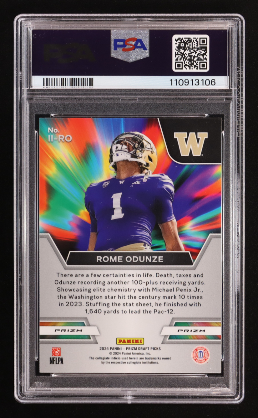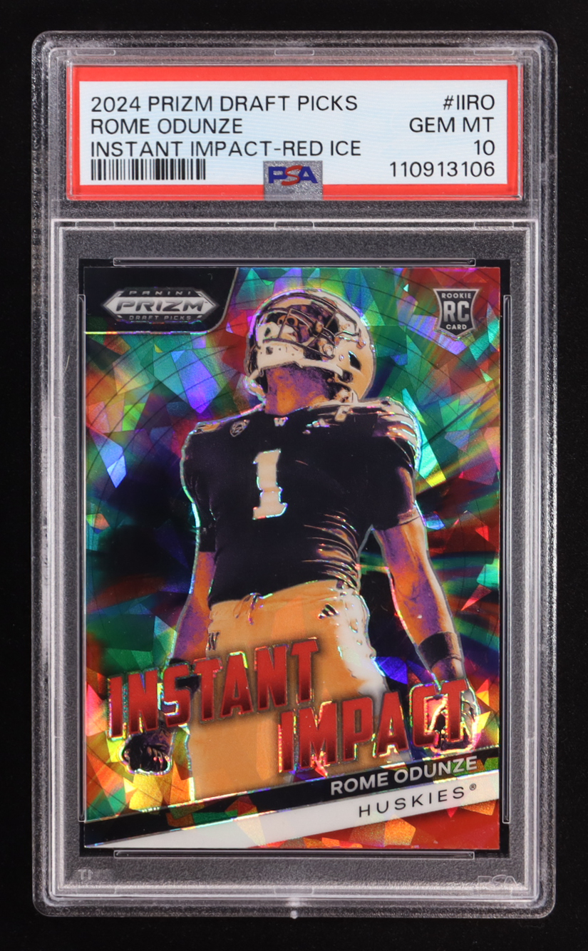 Rome Odunze 2024 Panini Prizm Draft Picks Instant Impact Red Ice #11 RC (PSA 10)