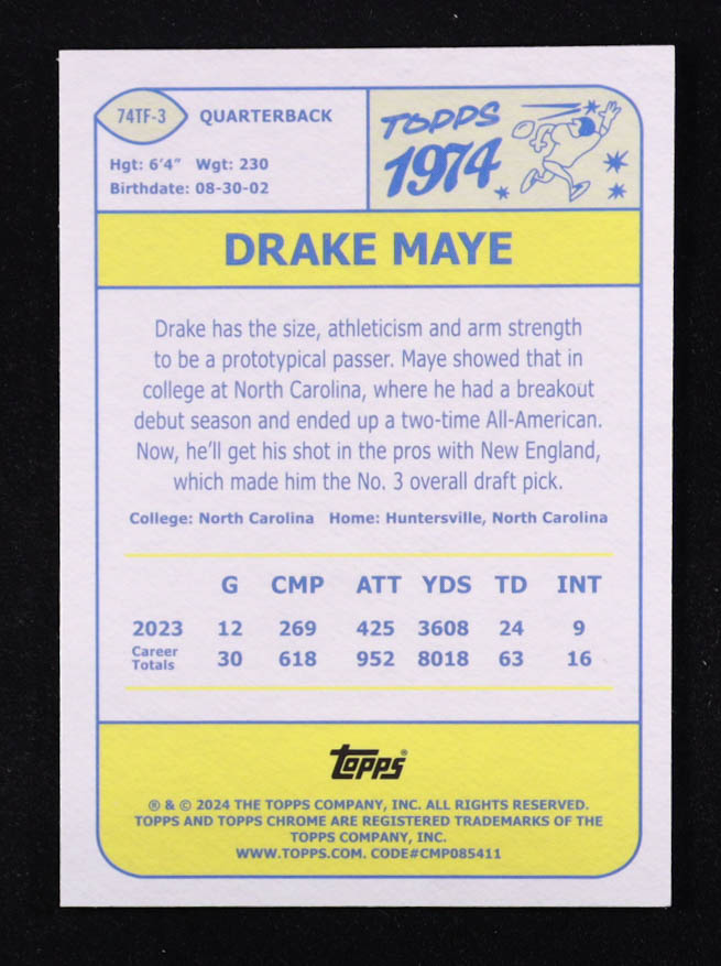 Drake Maye 2024 Topps Chrome '74 Topps Pink Refactors #74TF3 RC