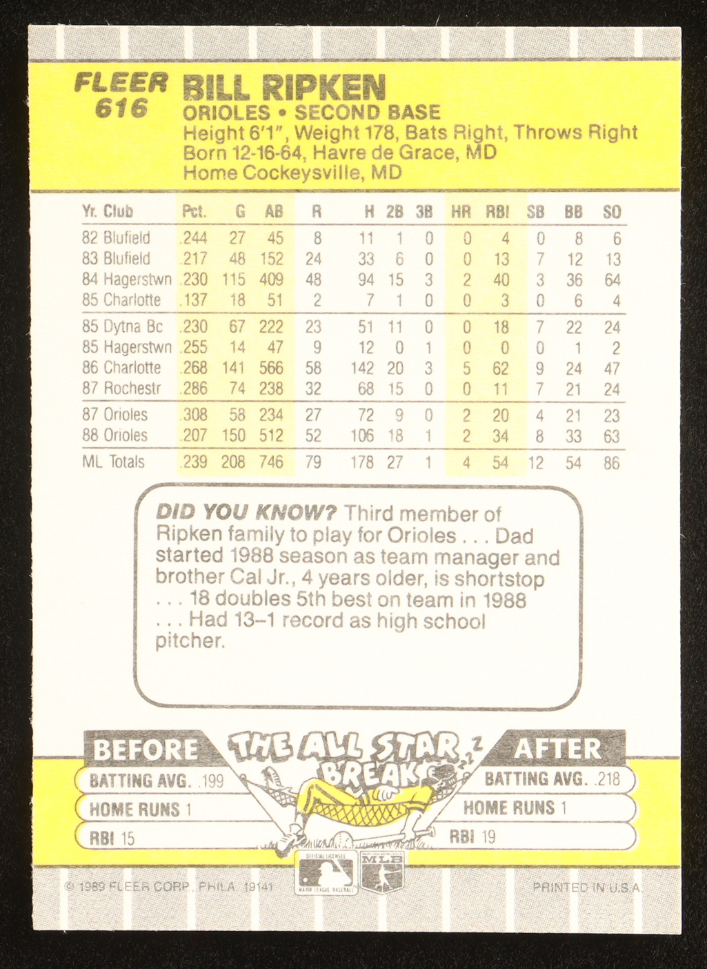 Bill Ripken 1989 Fleer Glossy BlackBox DP #616
