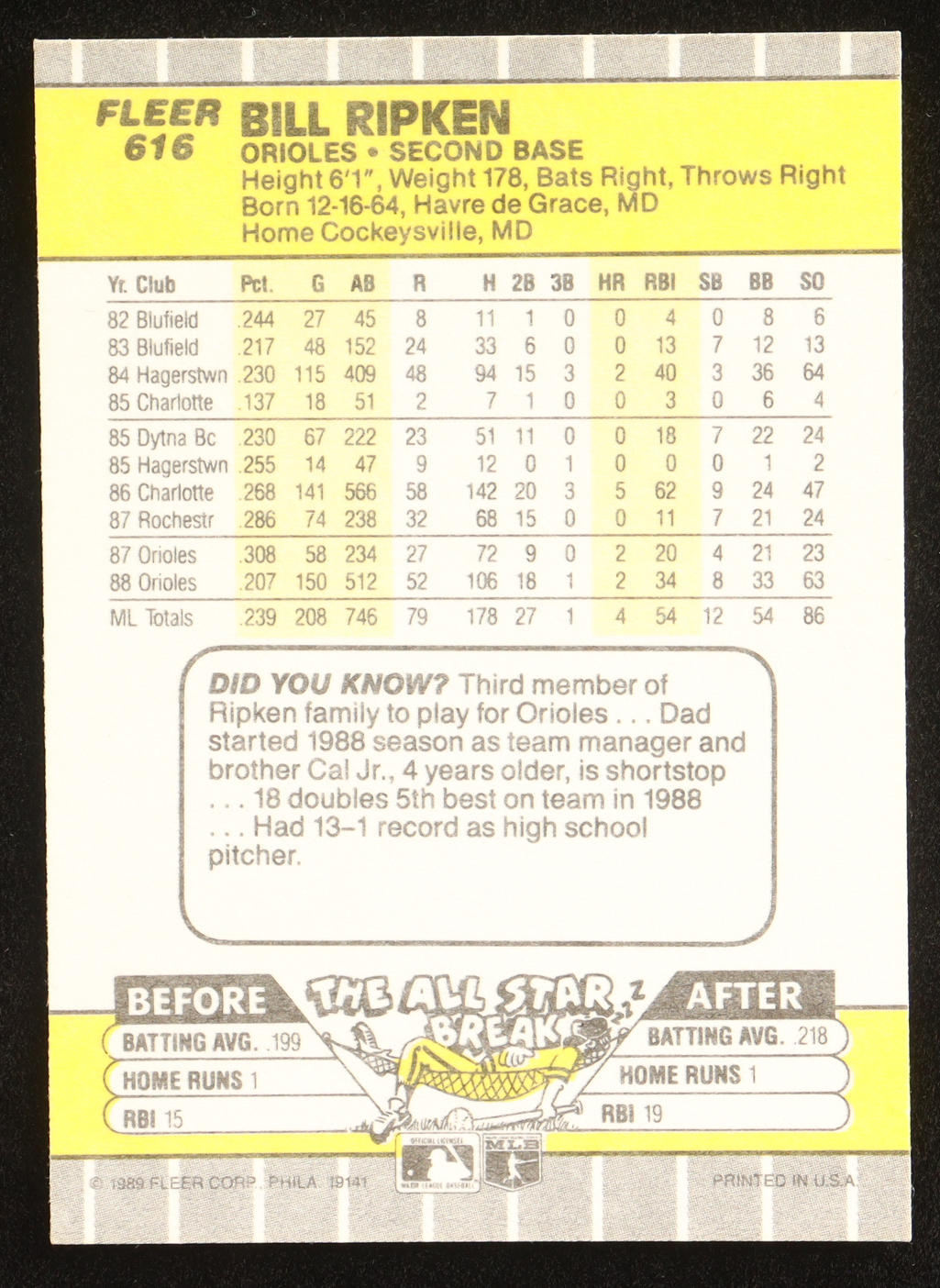 Bill Ripken 1989 Fleer Glossy BlackBox DP #616