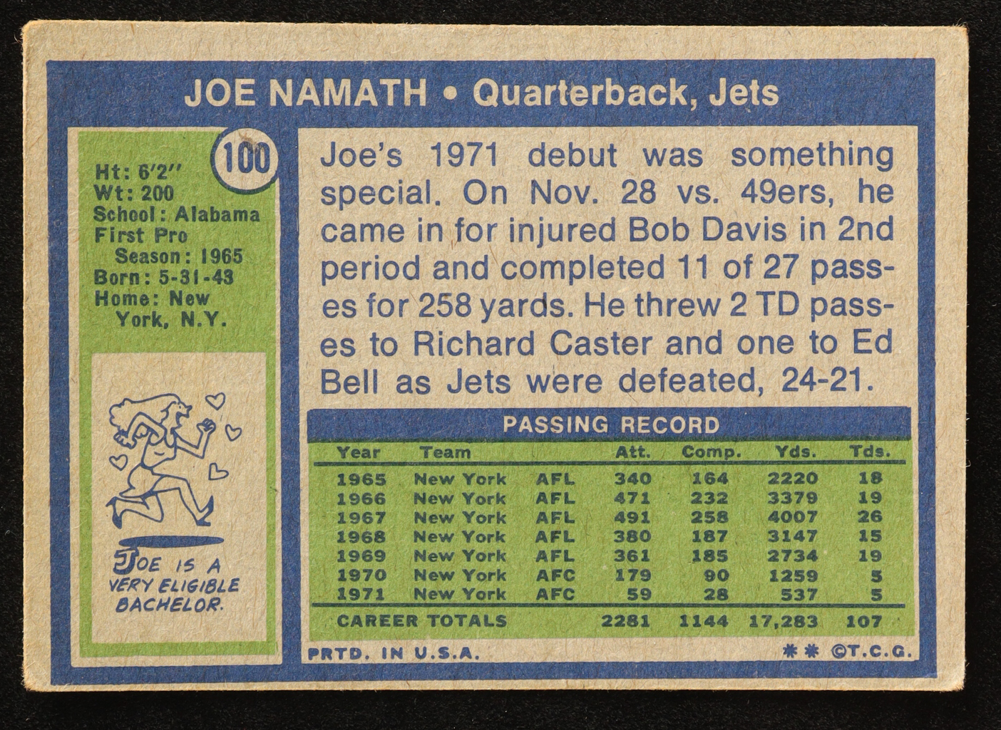 Joe Namath 1972 Topps #100