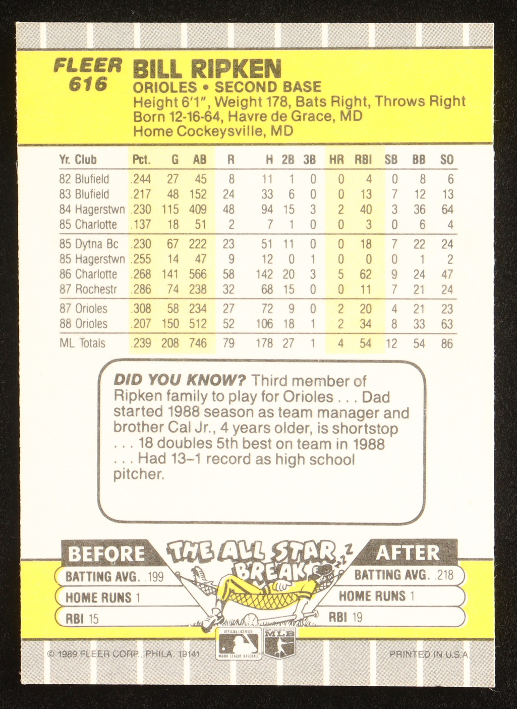 Bill Ripken 1989 Fleer Glossy BlackBox DP #616