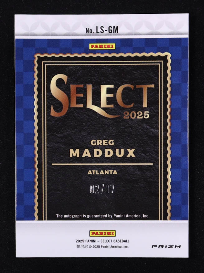 Greg Maddux 2025 Select Legendary Signatures Mojo Prizms FOTL #15 #02/17