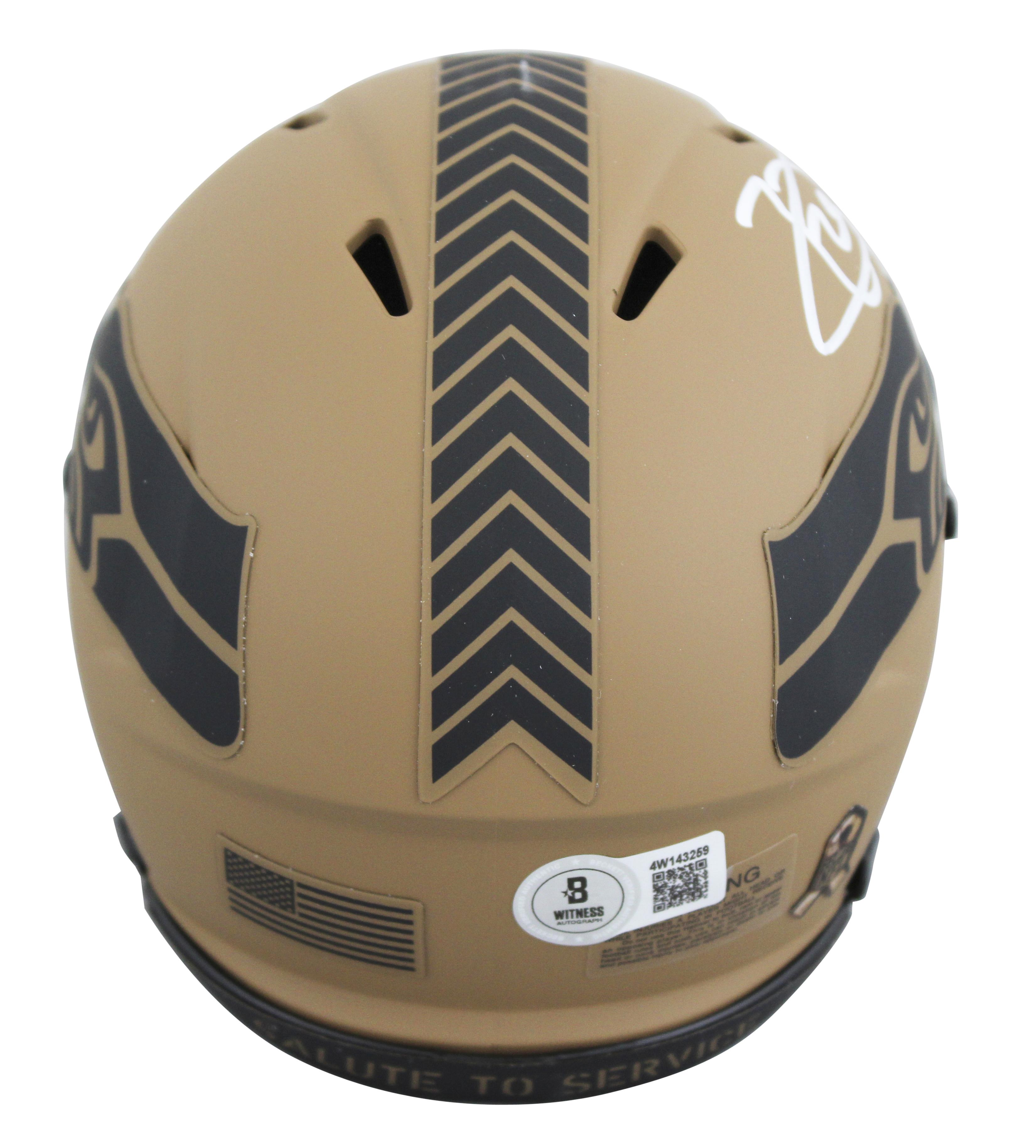 Riddell Seattle Seahawks Salute To Service Alternate Speed mini helmet has been hand-signed by Earl Thomas.