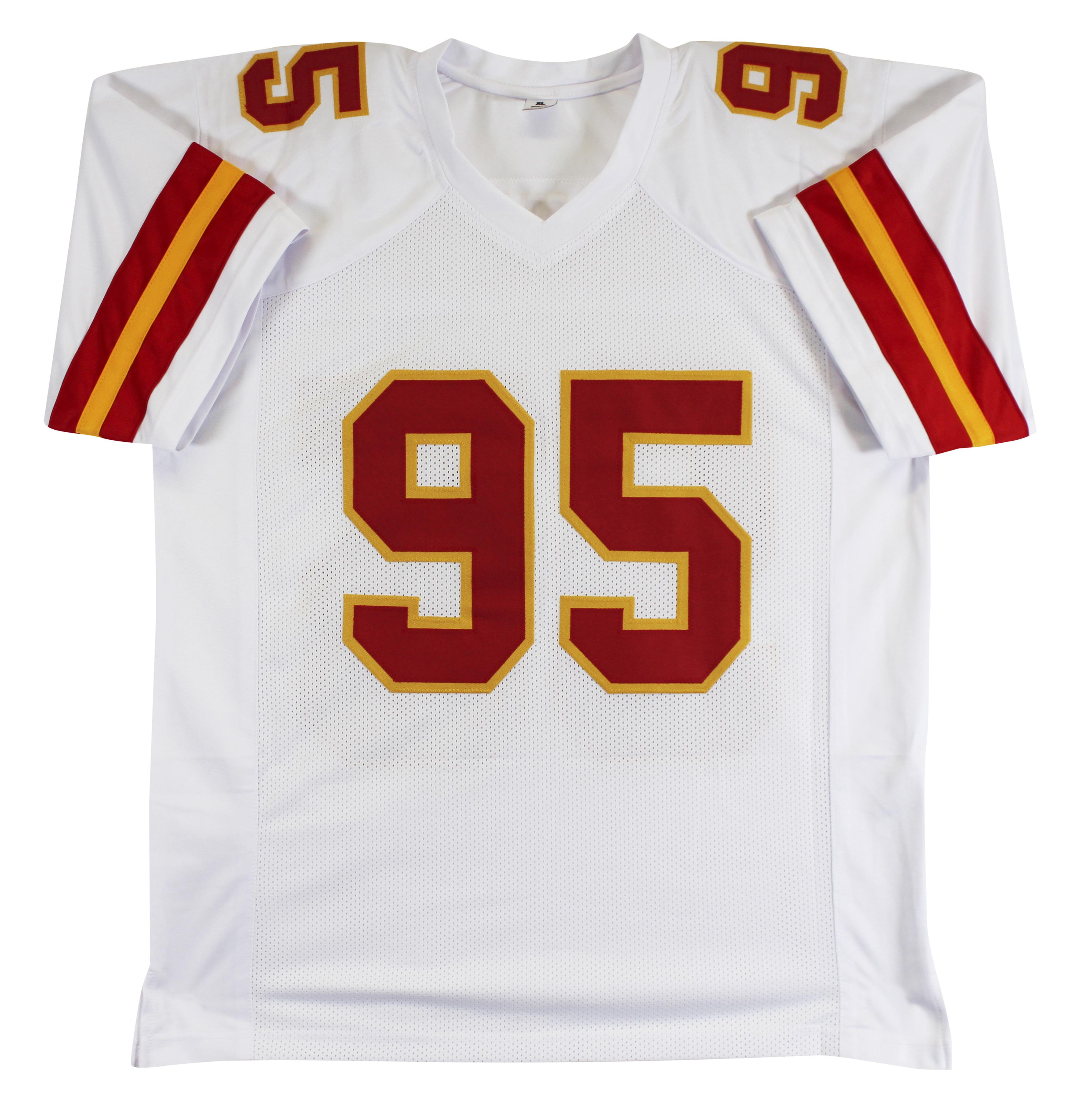 Custom jersey with everything sewn on, size XL. Hand-signed by Chris Jones.