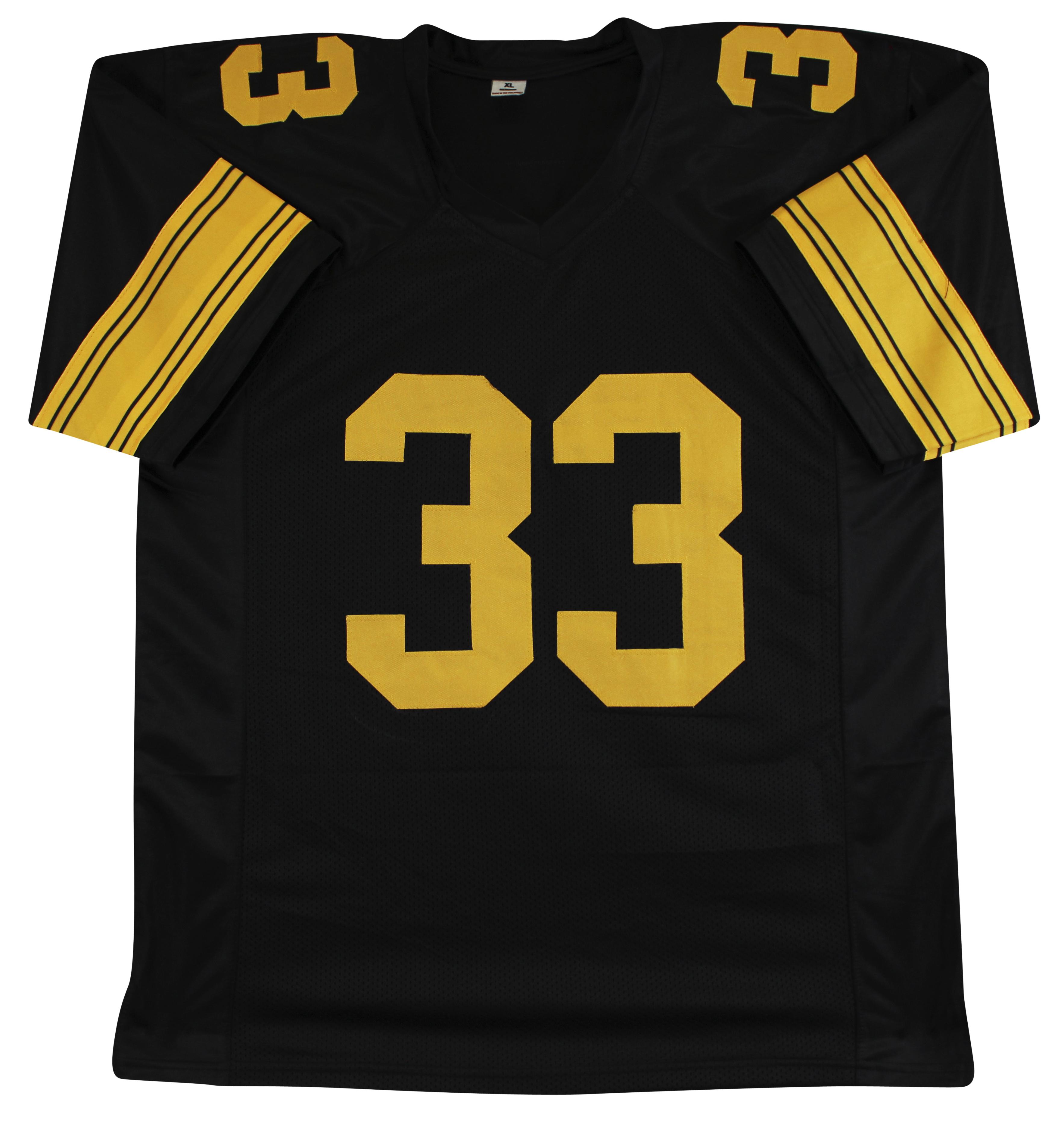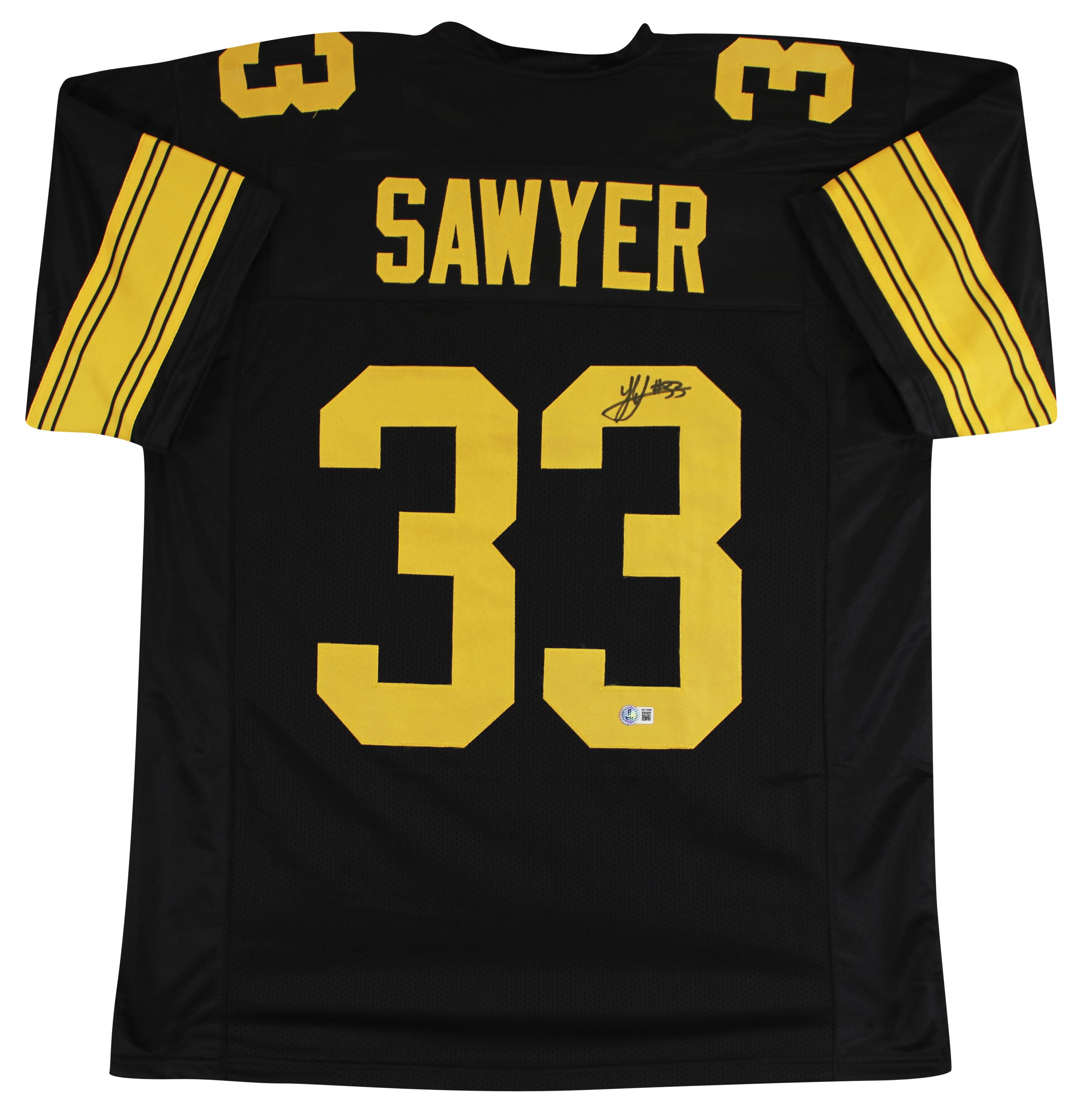 Custom jersey with everything sewn on, size XL. Hand-signed by Jack Sawyer (Pittsburgh Steelers).