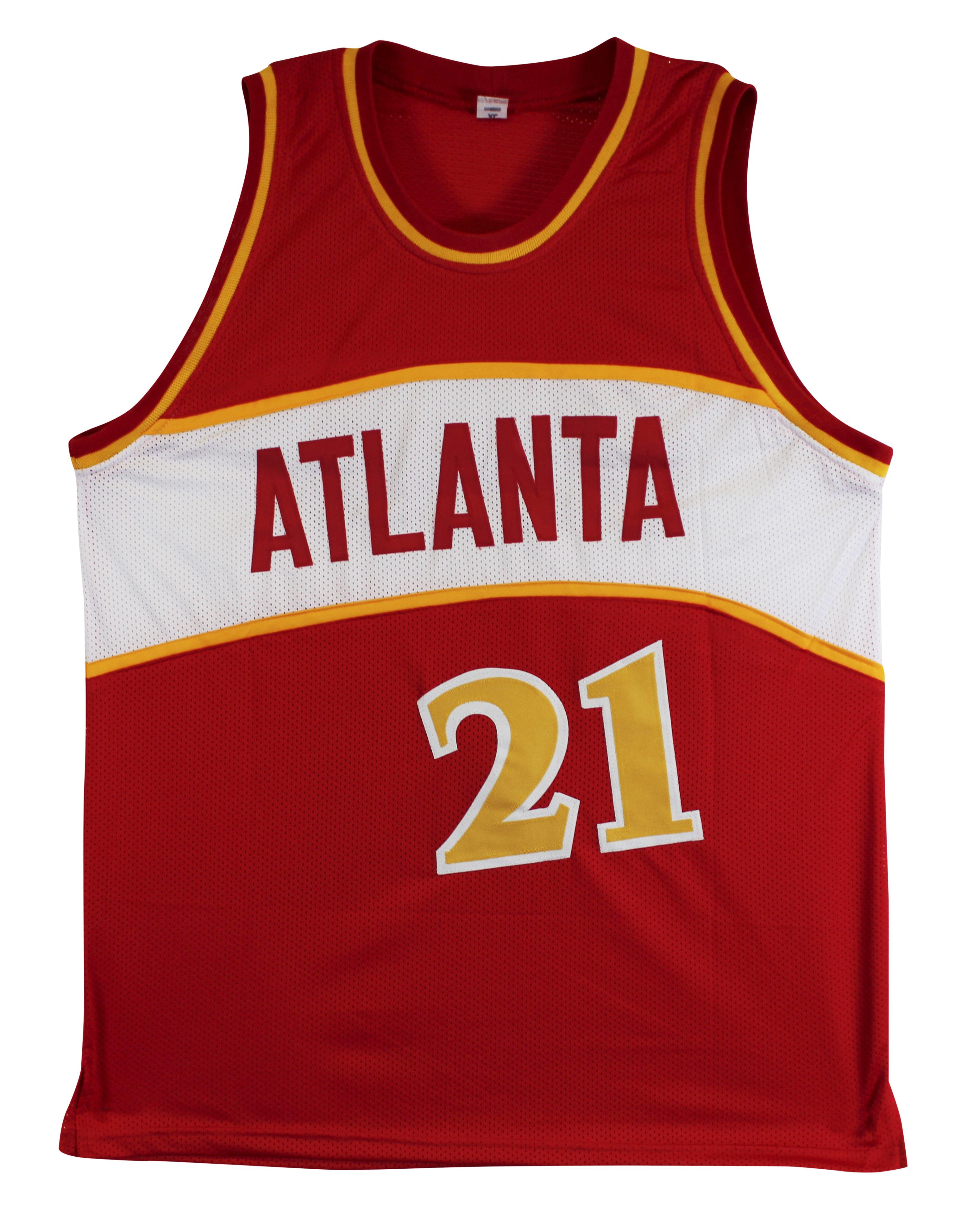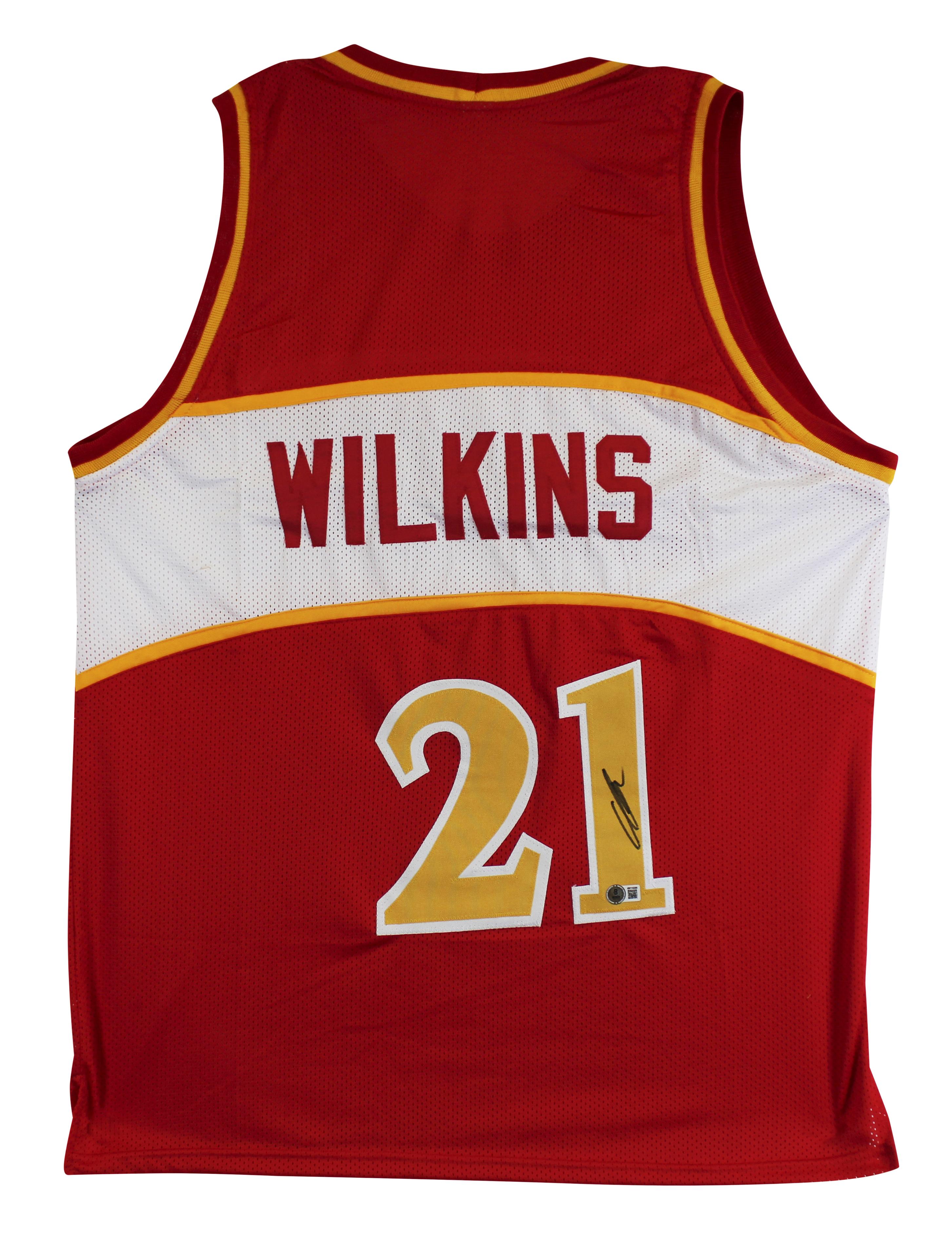 Custom jersey with everything sewn on, size XL. Hand-signed by Dominique Wilkins (Atlanta Hawks, HOF).