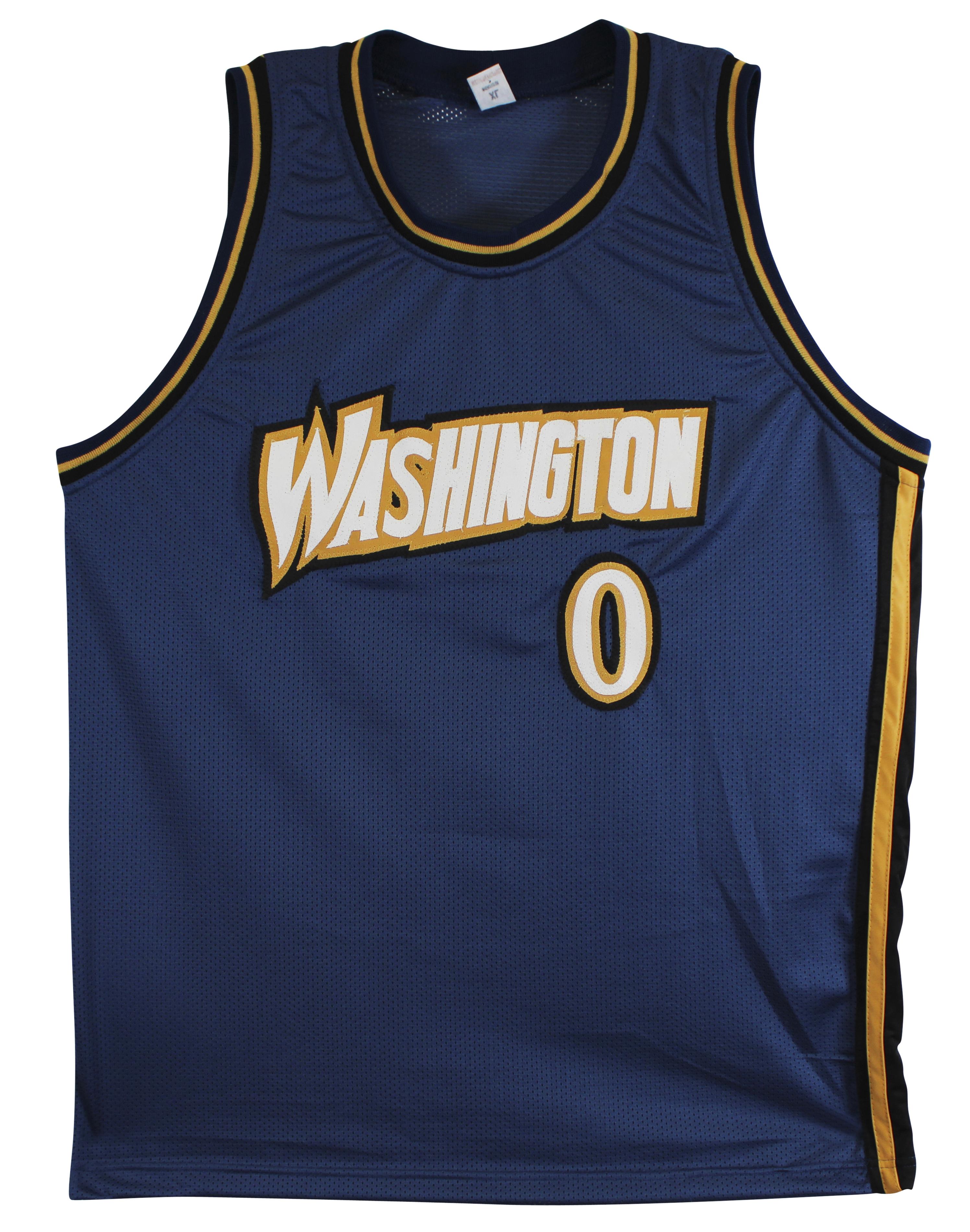 Custom jersey with everything sewn on, size XL. Hand-signed and inscribed by Gilbert Arenas (Washington Wizards).