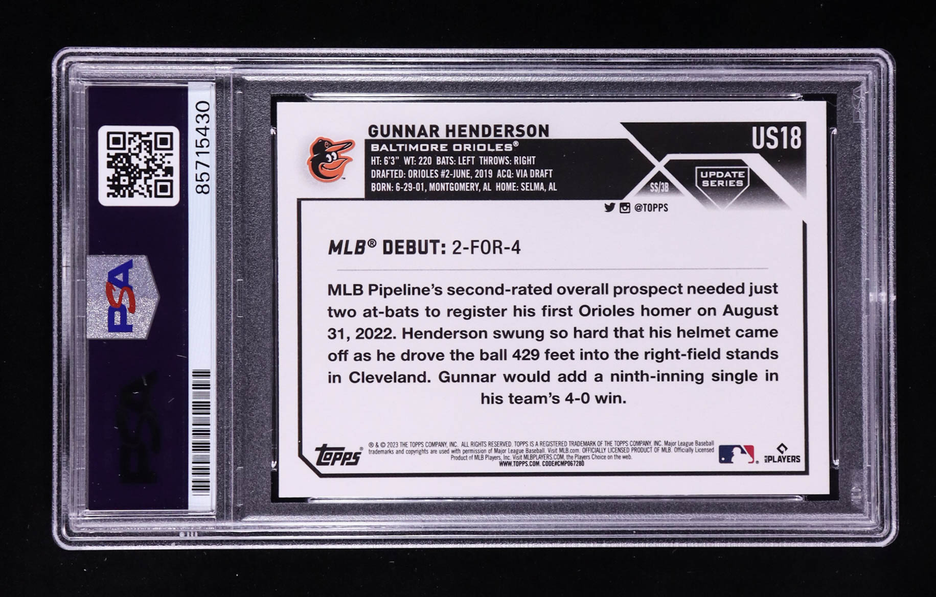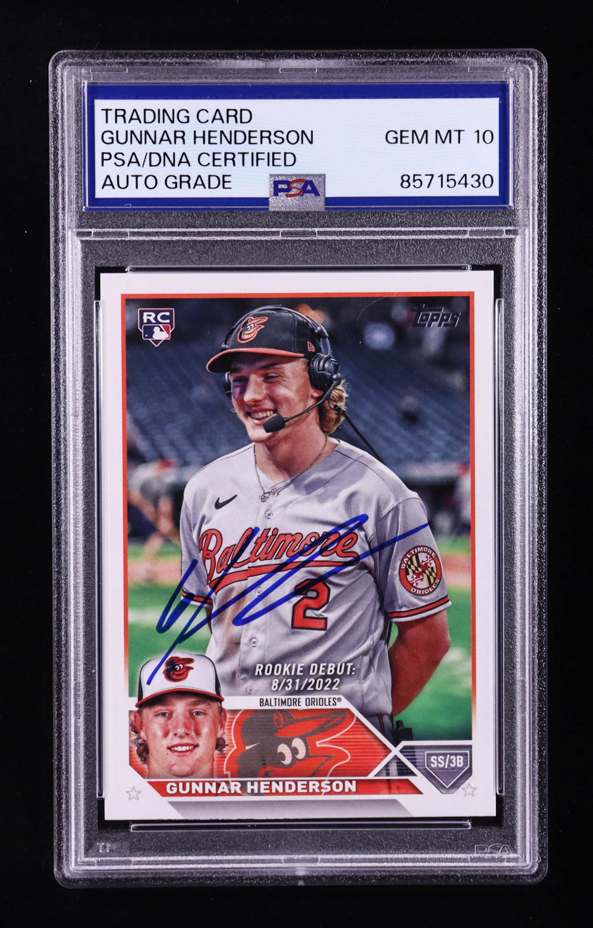 Gunnar Henderson Signed 2023 Topps Update Series #US18 RC (PSA | Autograph Graded PSA 10)