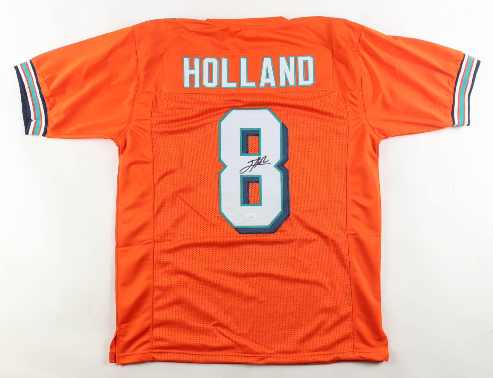 Custom jersey with everything sewn on, size XL. Hand-signed by Jevon Holland.