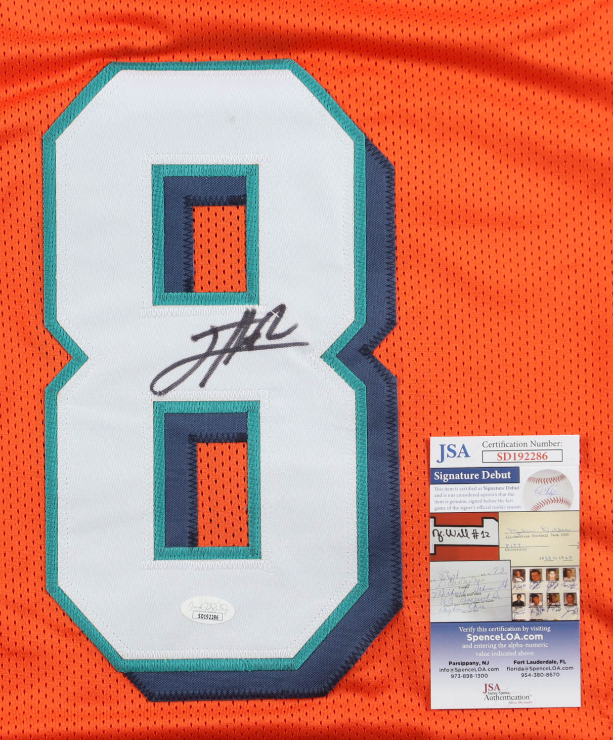 The autograph(s) includes an official James Spence Authentication (JSA) "Signature Debut" hologram and COA. "Signature Debut" is the autographed memorabilia equivalent to a rookie card. The JSA definition of a "Signature Debut" is as follows: "Any item that is autographed and received by JSA prior to the last game of the signer's official rookie season.