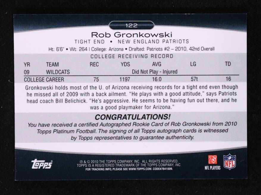 Rob Gronkowski 2010 Topps Platinum Rookie Autographs #122 RC #872/999