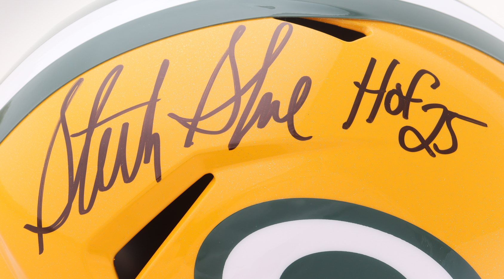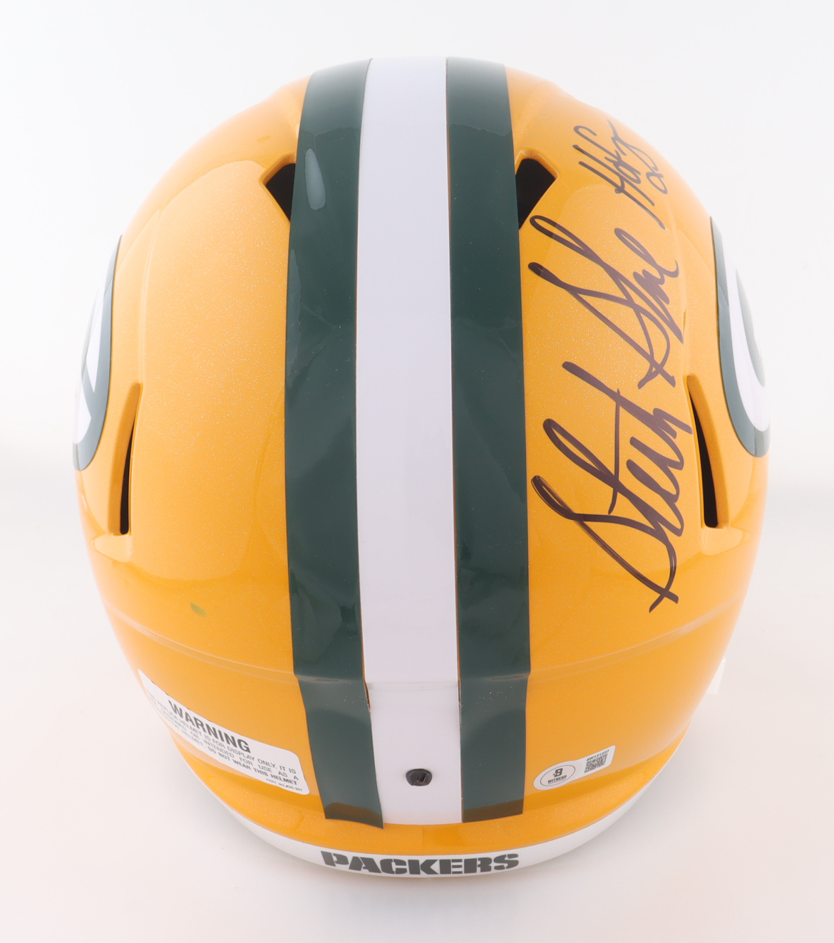 Sterling Sharpe Signed Packers Full-Size Speed Helmet Inscribed "HOF 25" (Beckett)