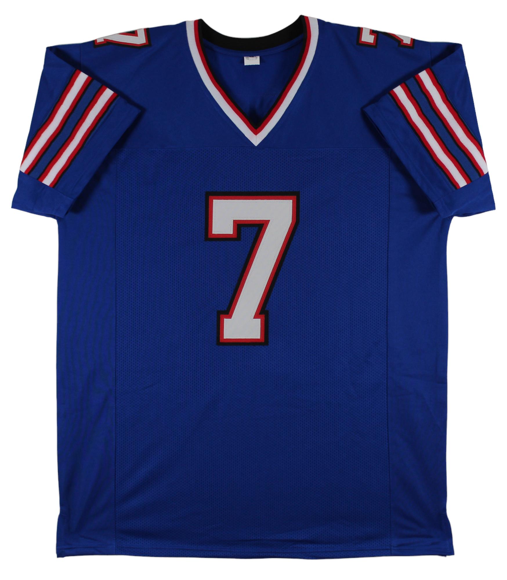 Custom jersey with everything sewn on, size XL. Has been hand-signed by Doug Flutie.