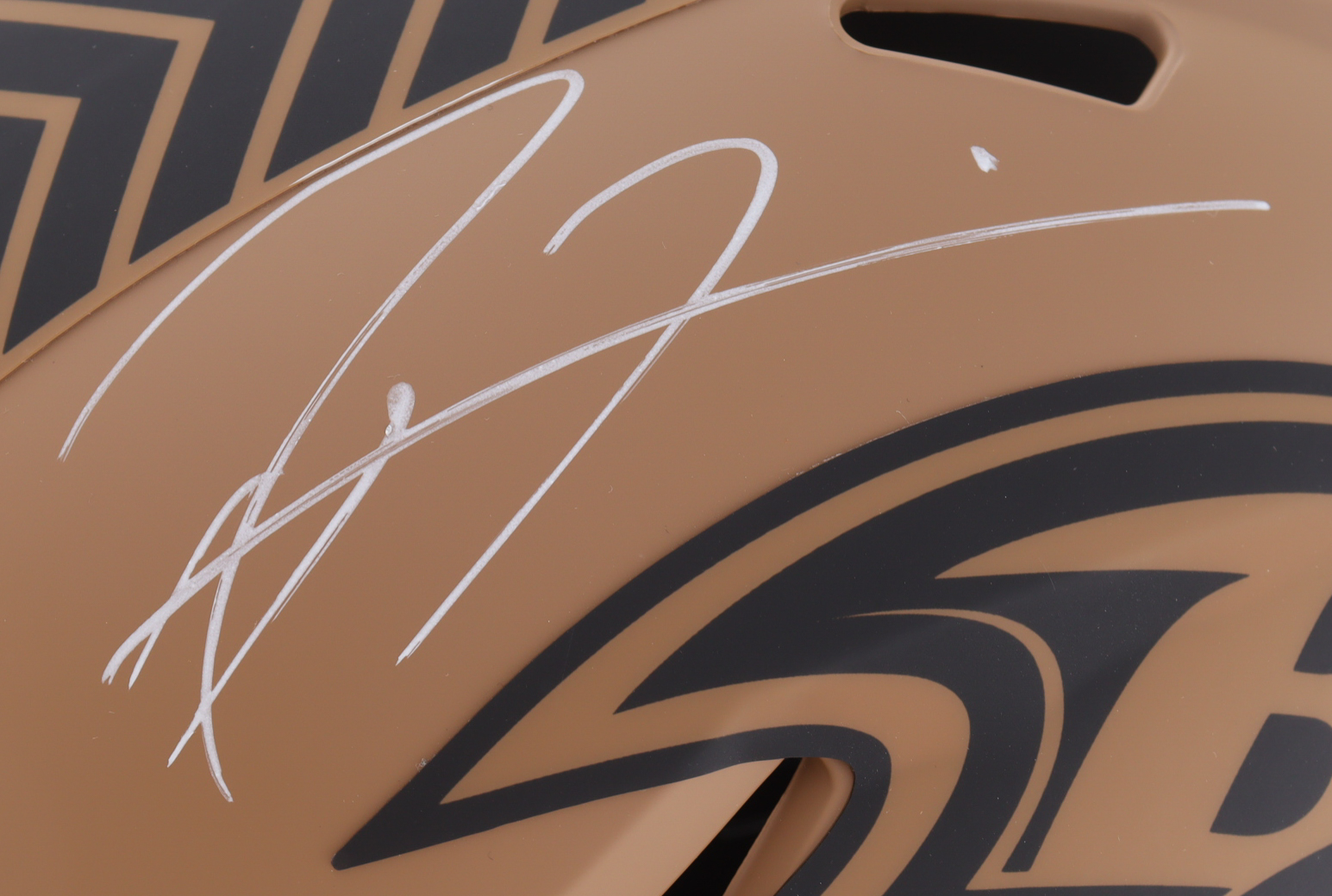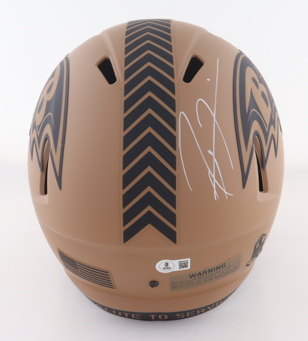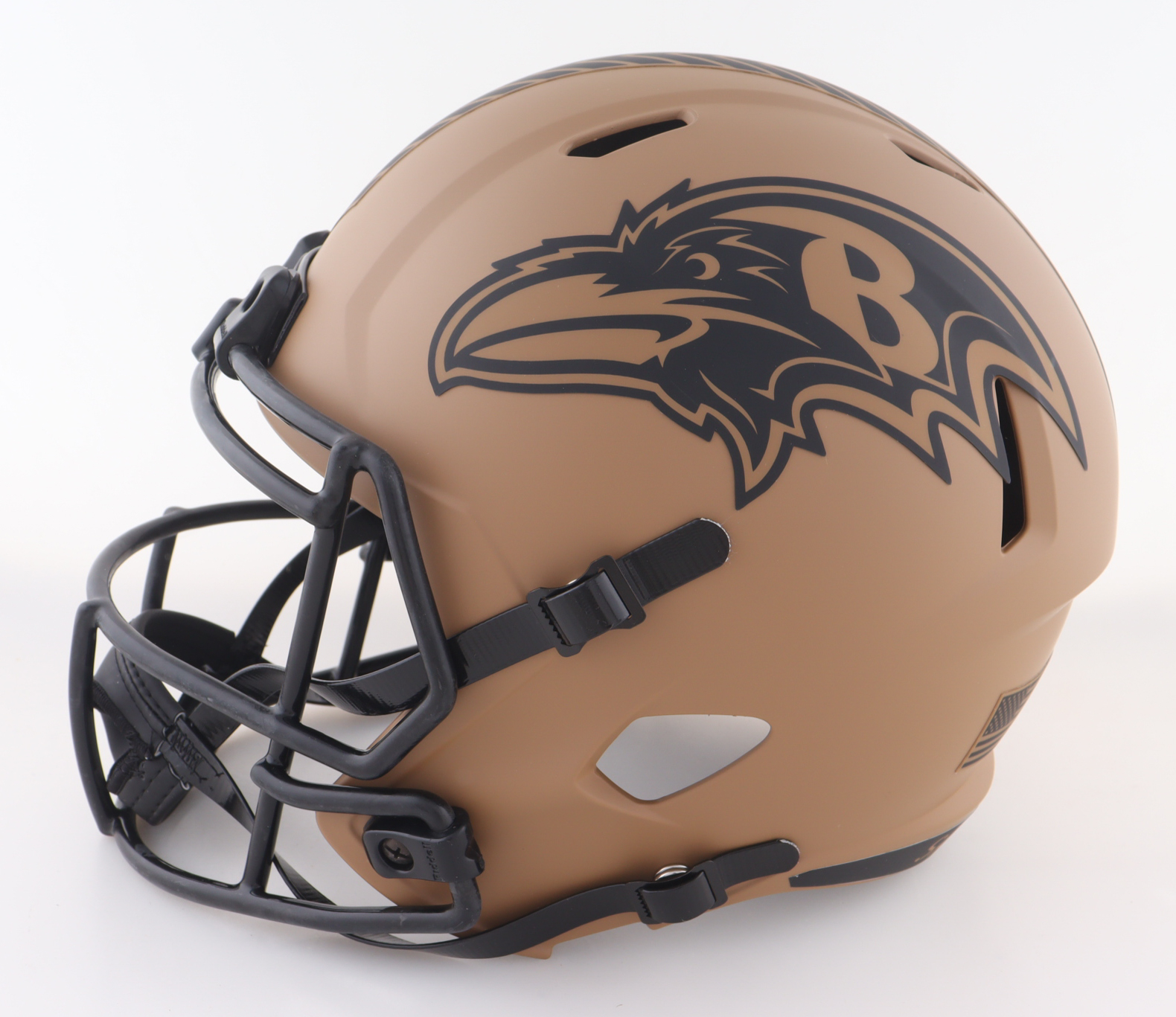 Riddell Baltimore Ravens Full-Size Salute To Service Alternate Speed Replica Helmet has been hand-signed by Ray Lewis (HOF).