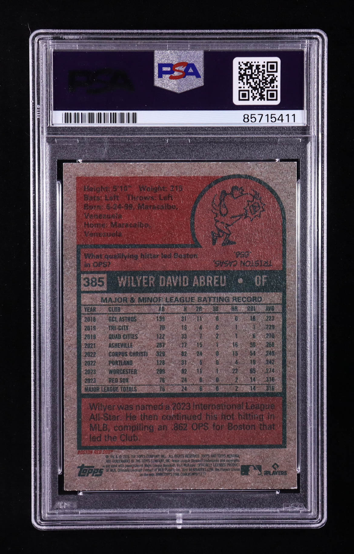 Wilyer Abreu Signed 2024 Topps Heritage #385 RC (PSA | Autograph Graded PSA 10)