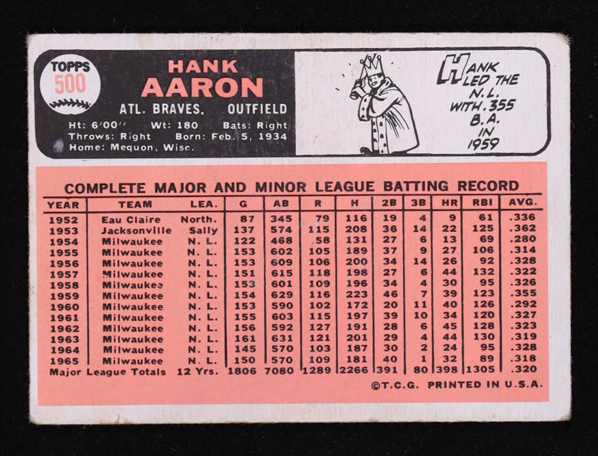 Hank Aaron 1966 Topps #500