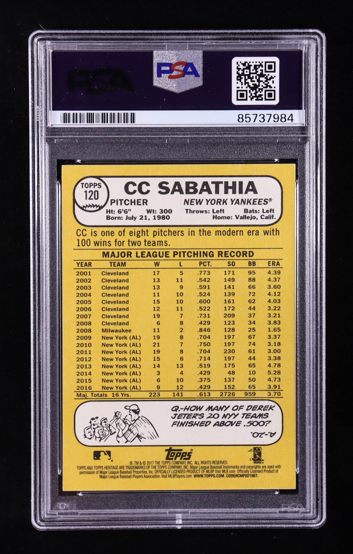 C.C. Sabathia Signed 2017 Topps Heritage #120 (PSA | Autograph Graded PSA 10)