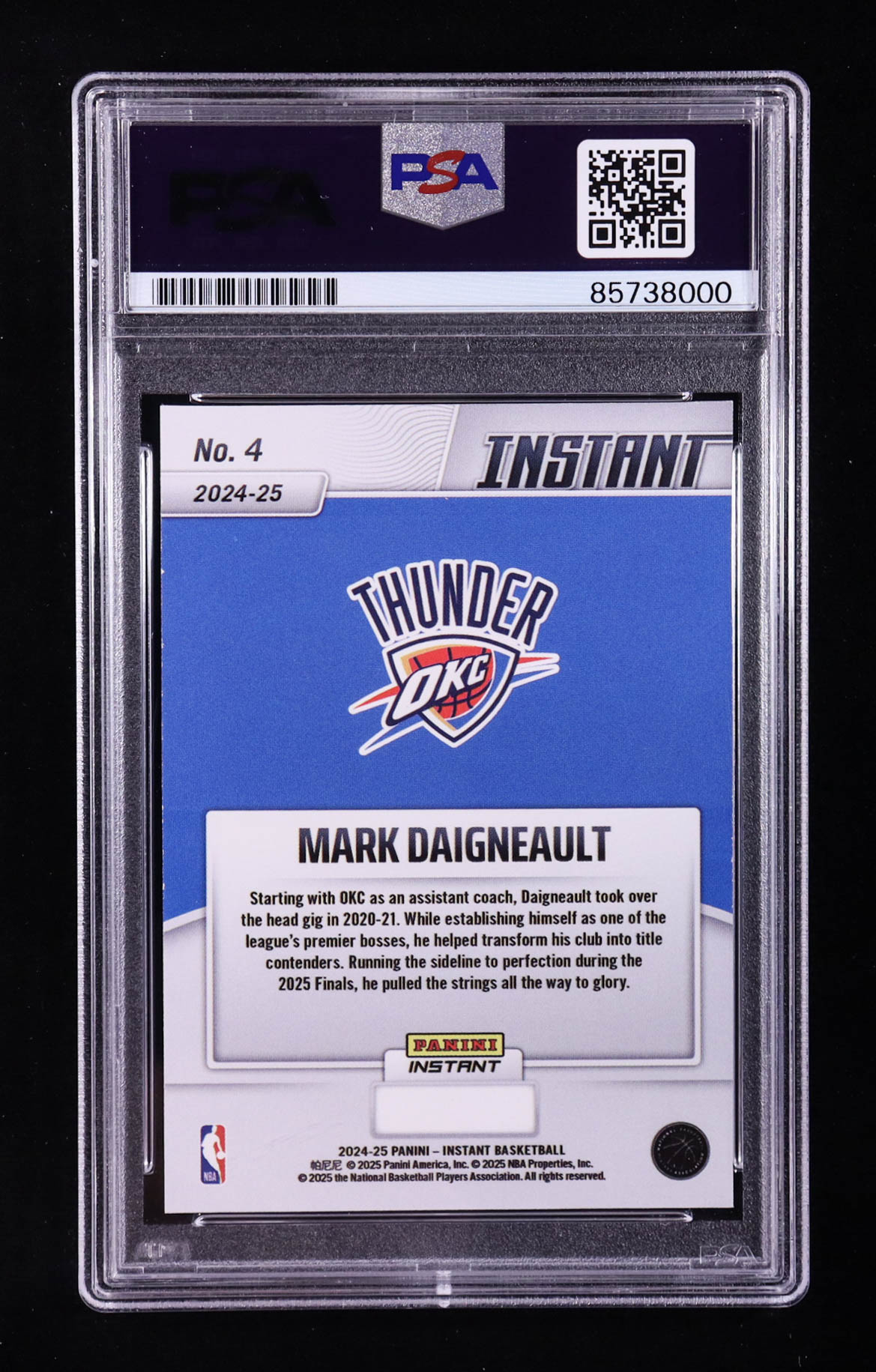 Mark Daigneault Signed 2024-25 Panini Instant #4 (PSA | Autograph Graded PSA 10)